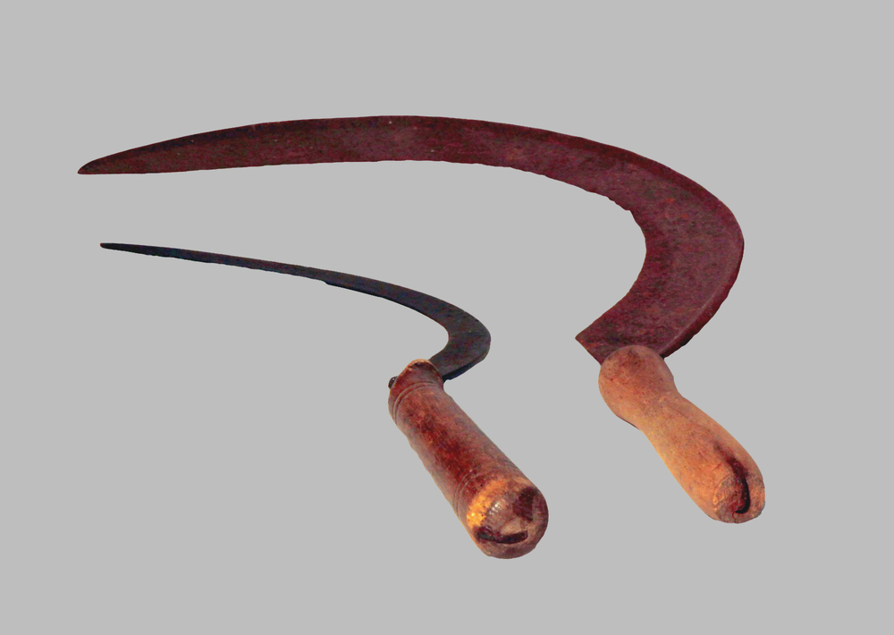 Sikkel, een halfrond mes om gras of graan mee te maaien
