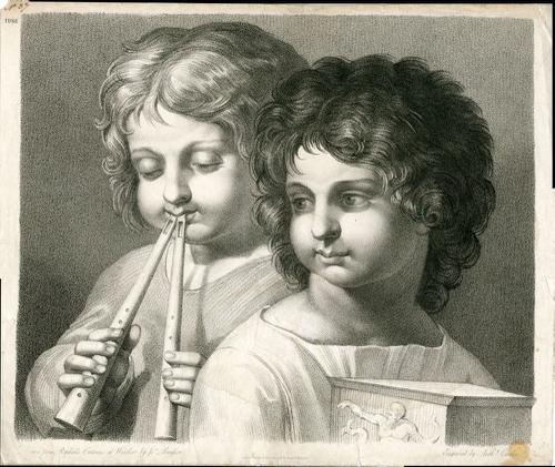 Tekenvoorbeeld van twee kinderkopjes naar Raphael