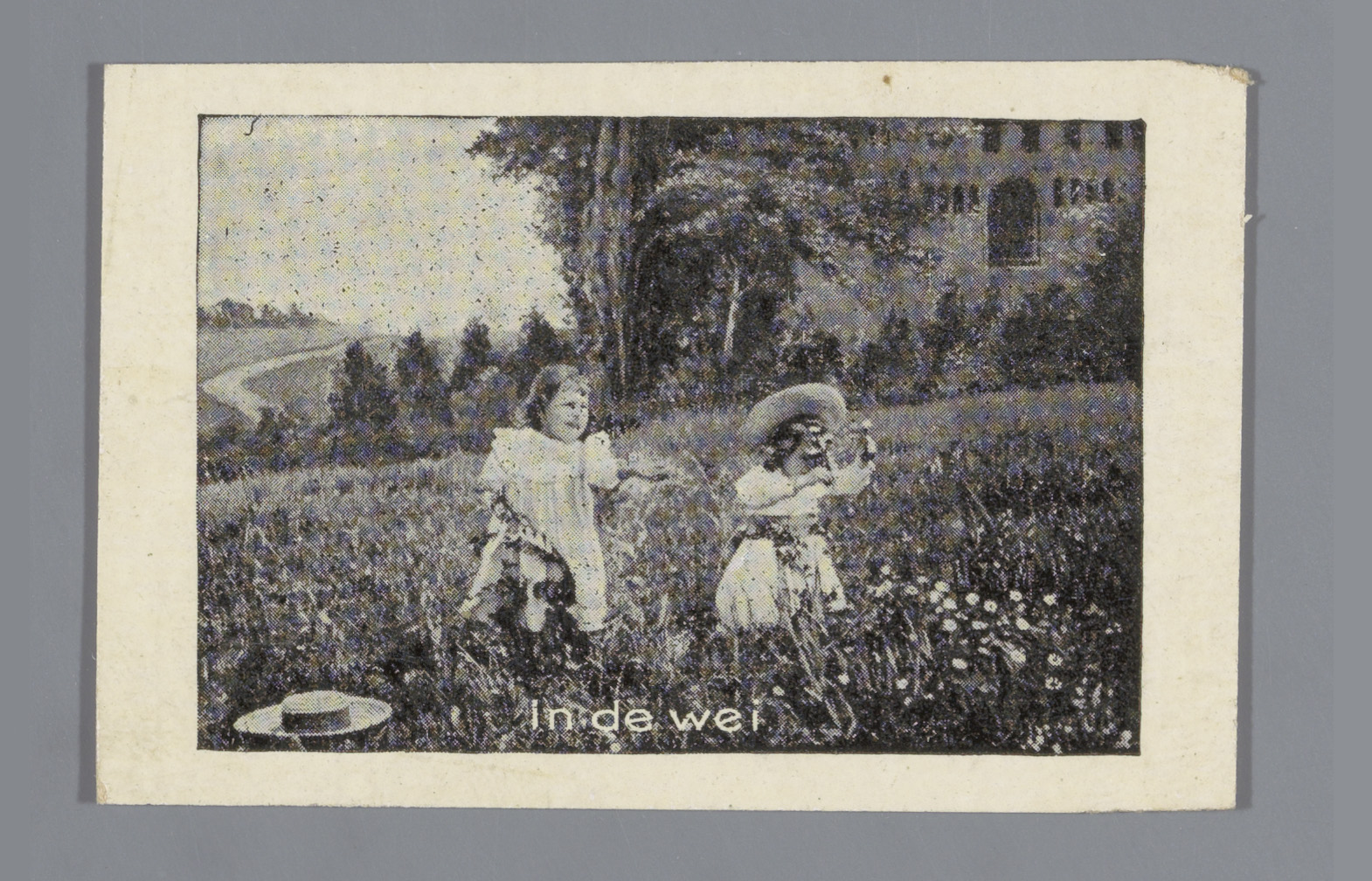 Twee meisjes in een wei met bloemen
