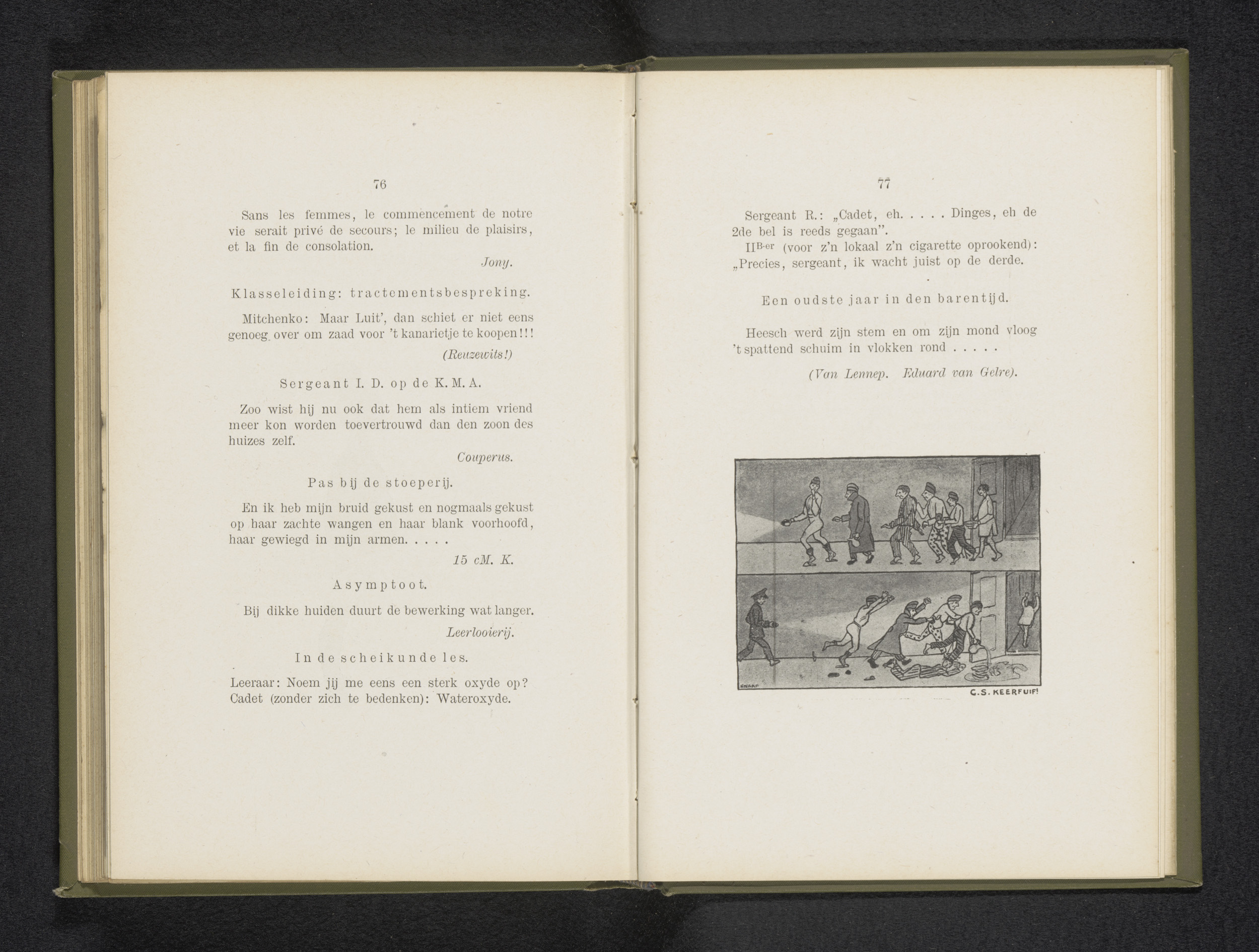 Reproductie van een tekening van een groep cadetten ...