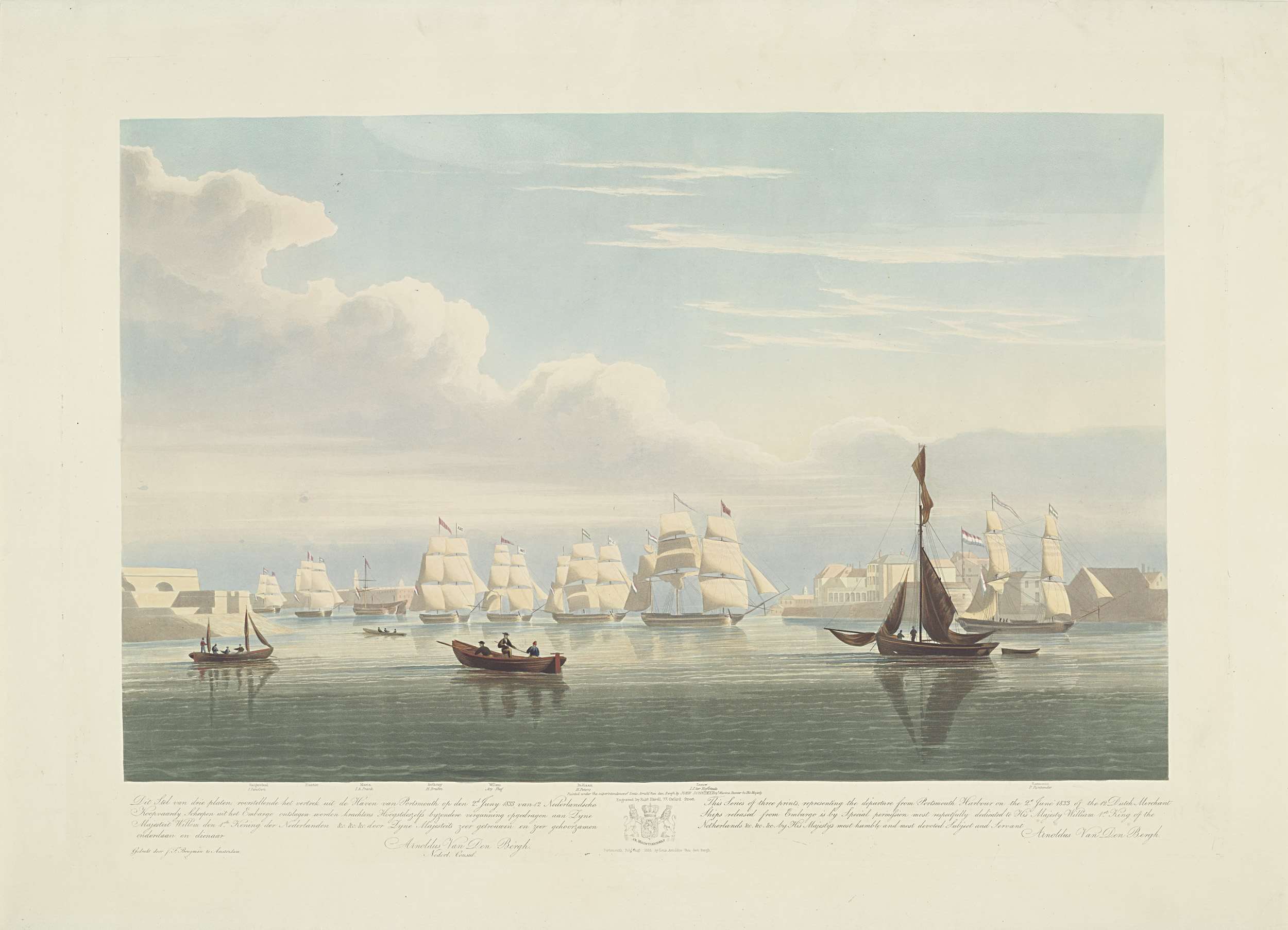 Vertrek van twaalf Nederlandse koopvaardijschepen ui...