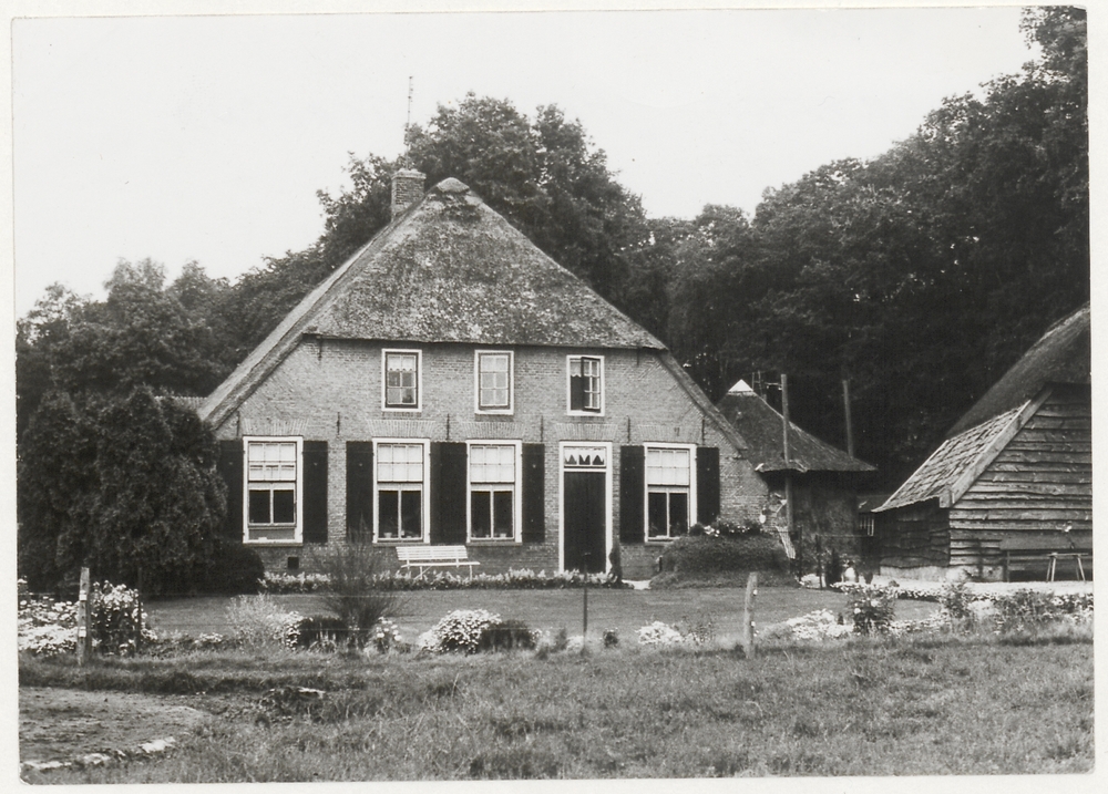 Zwart-wit foto van een luchtopname van de Bijland en...