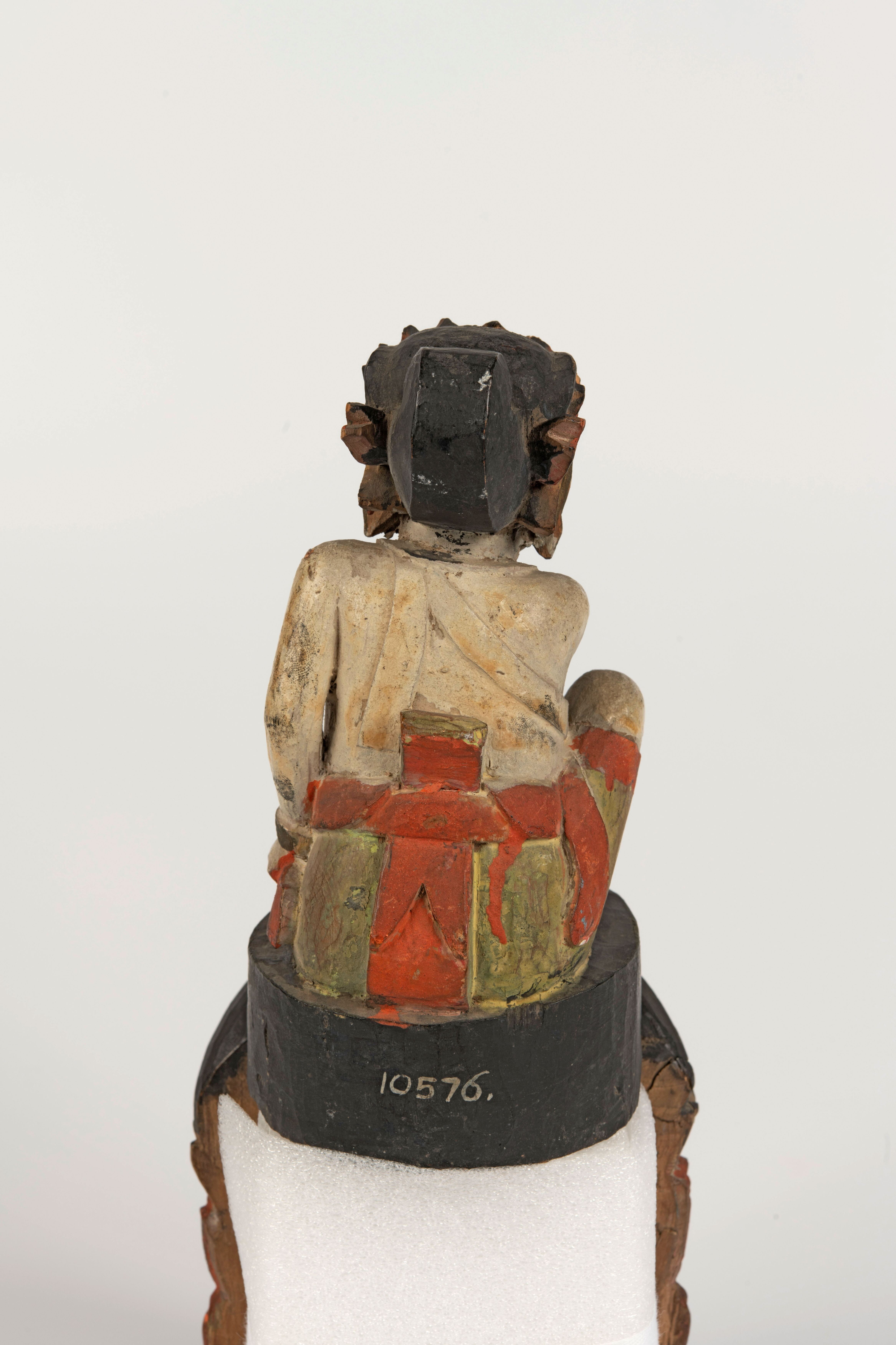 Beschilderd houtsnijwerk in de vorm van een demonenk...