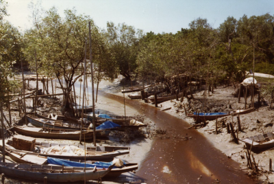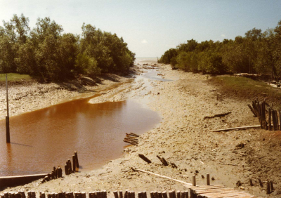 Kreek bij hoog water in Maleisië, 3 maart 1977.