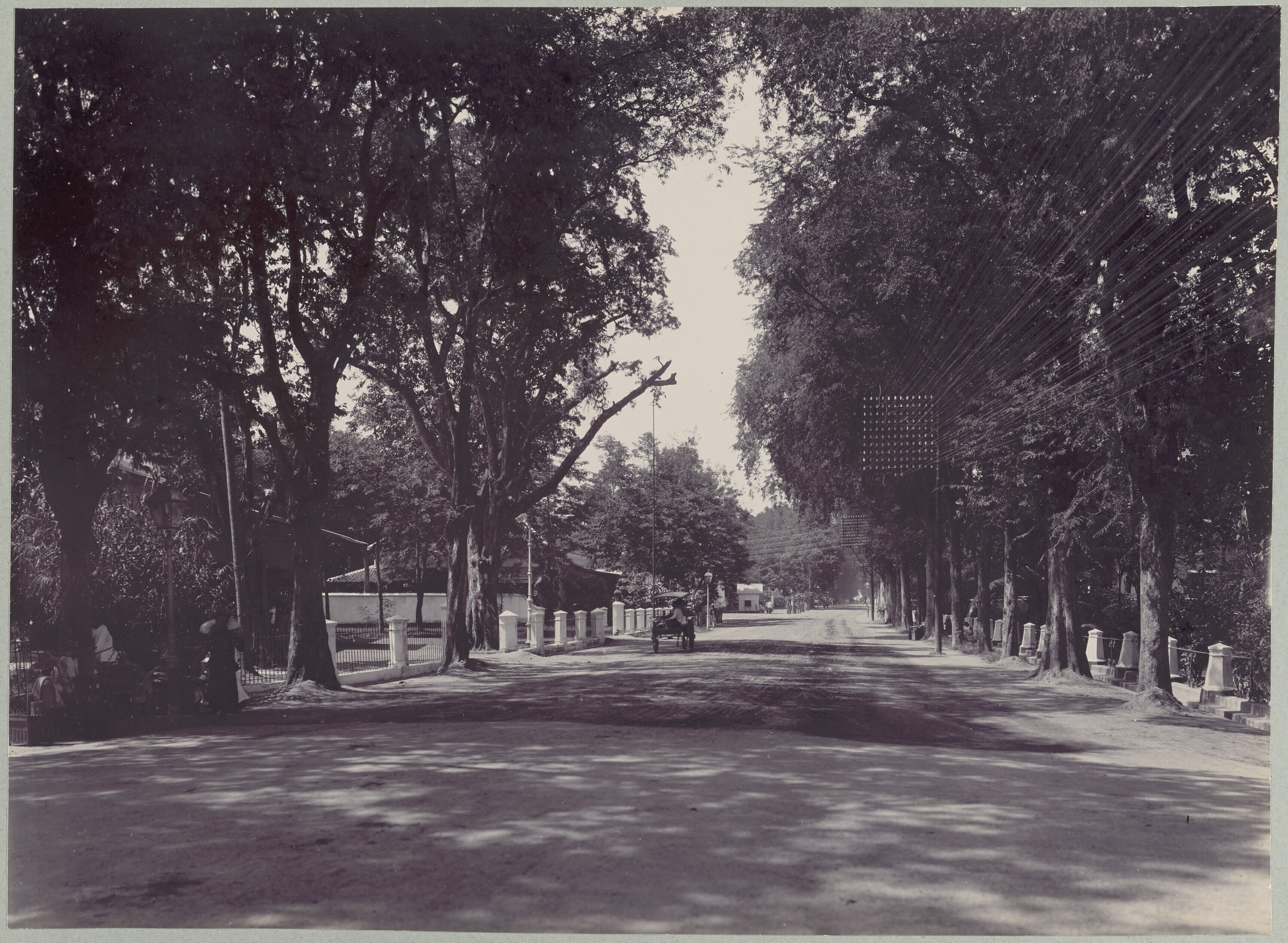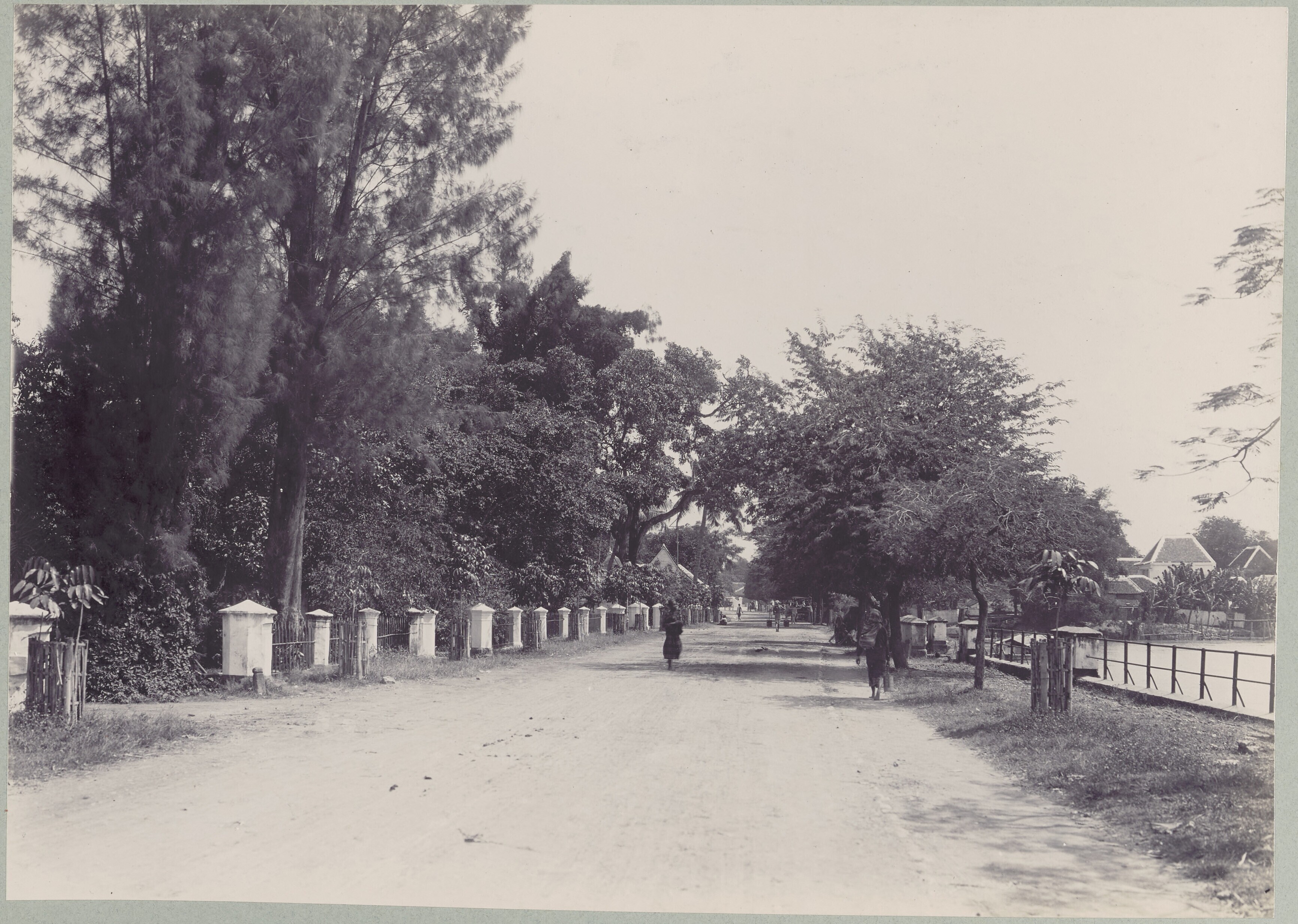 Gezicht op een straat tussen de bomen in Soerabaja