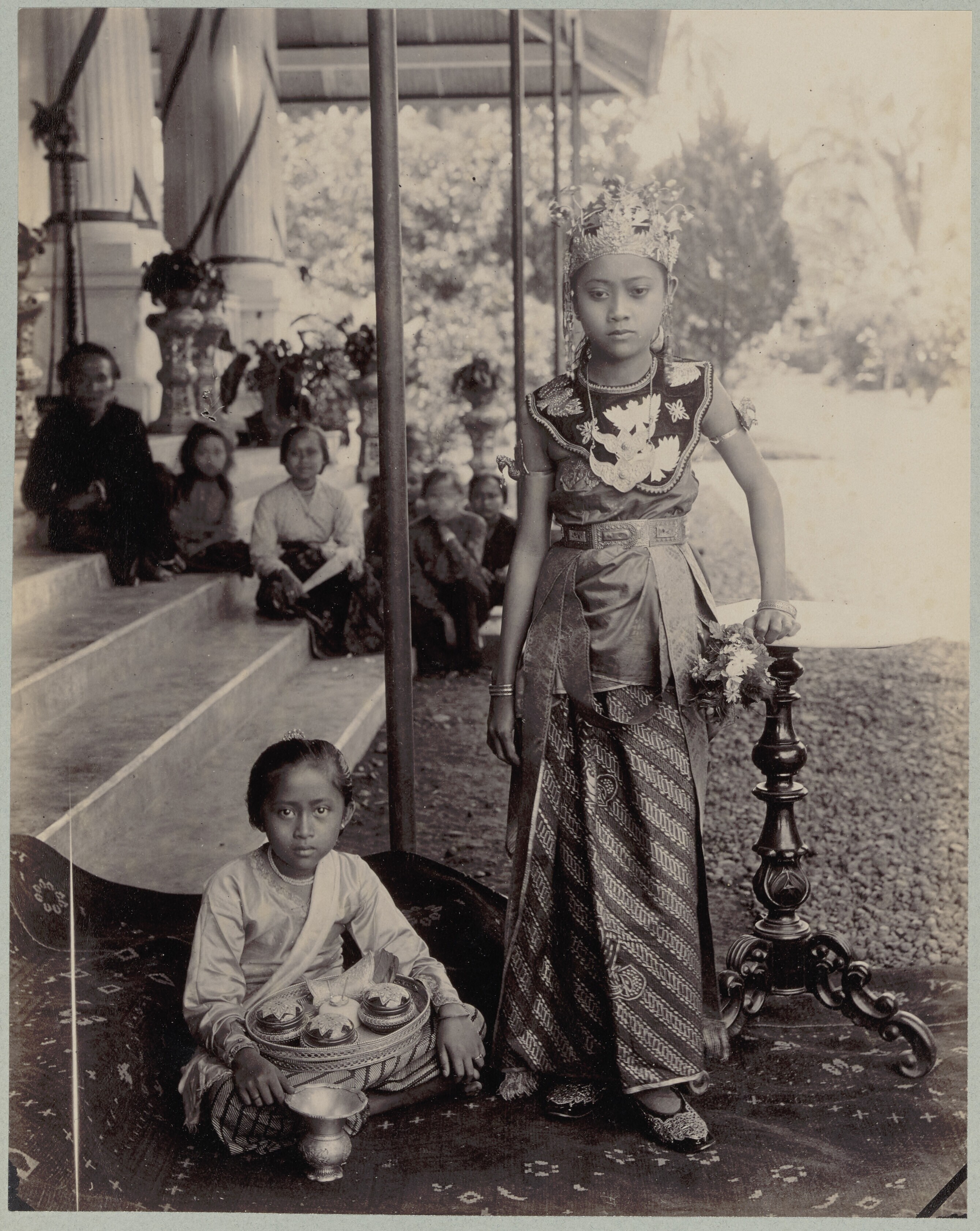 Portret van een Javaans meisje in dans- of staatsiek...