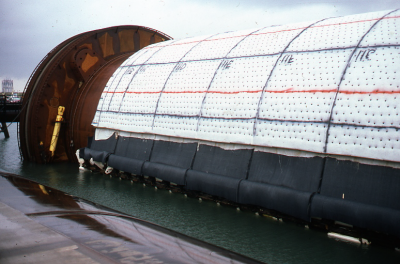 Artistieke weergave van het hefschip Ostrea, ingezet...