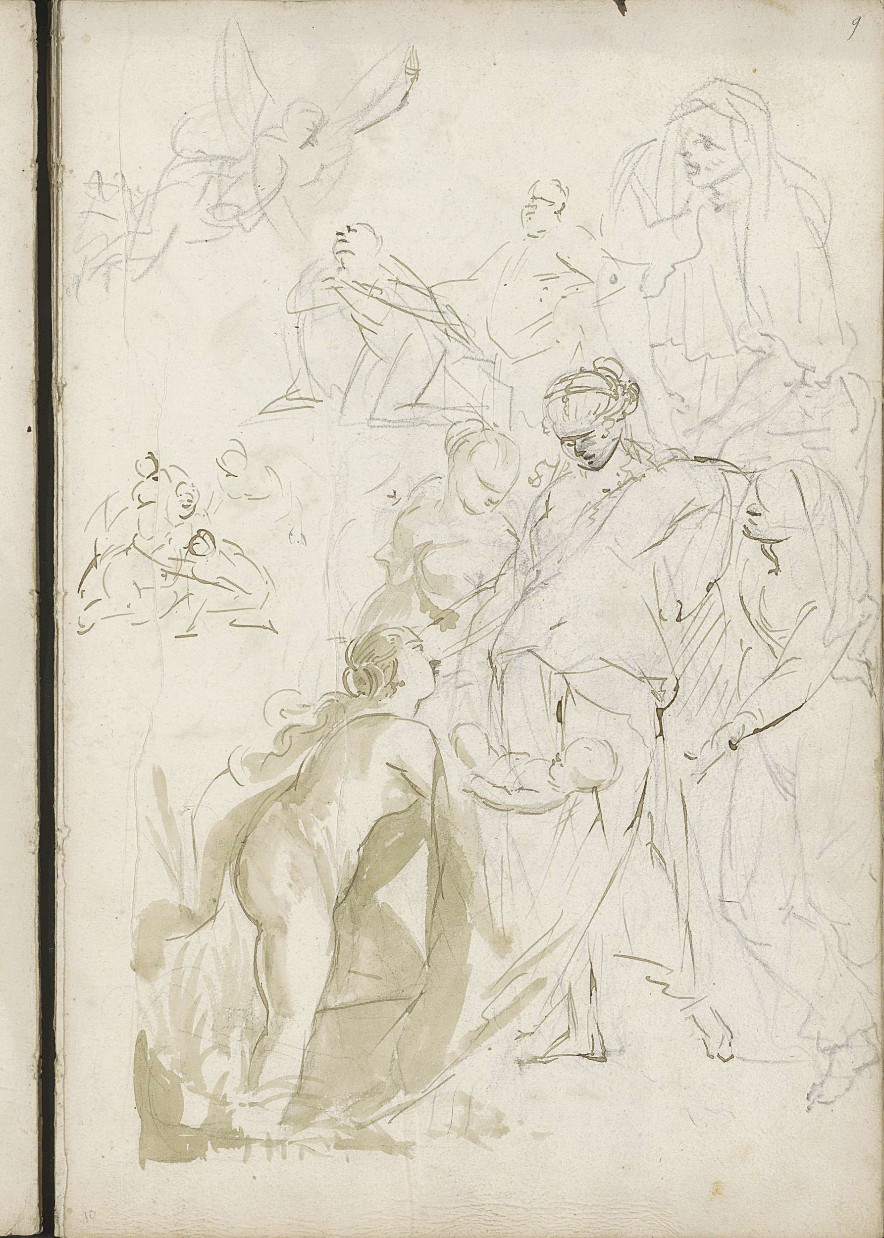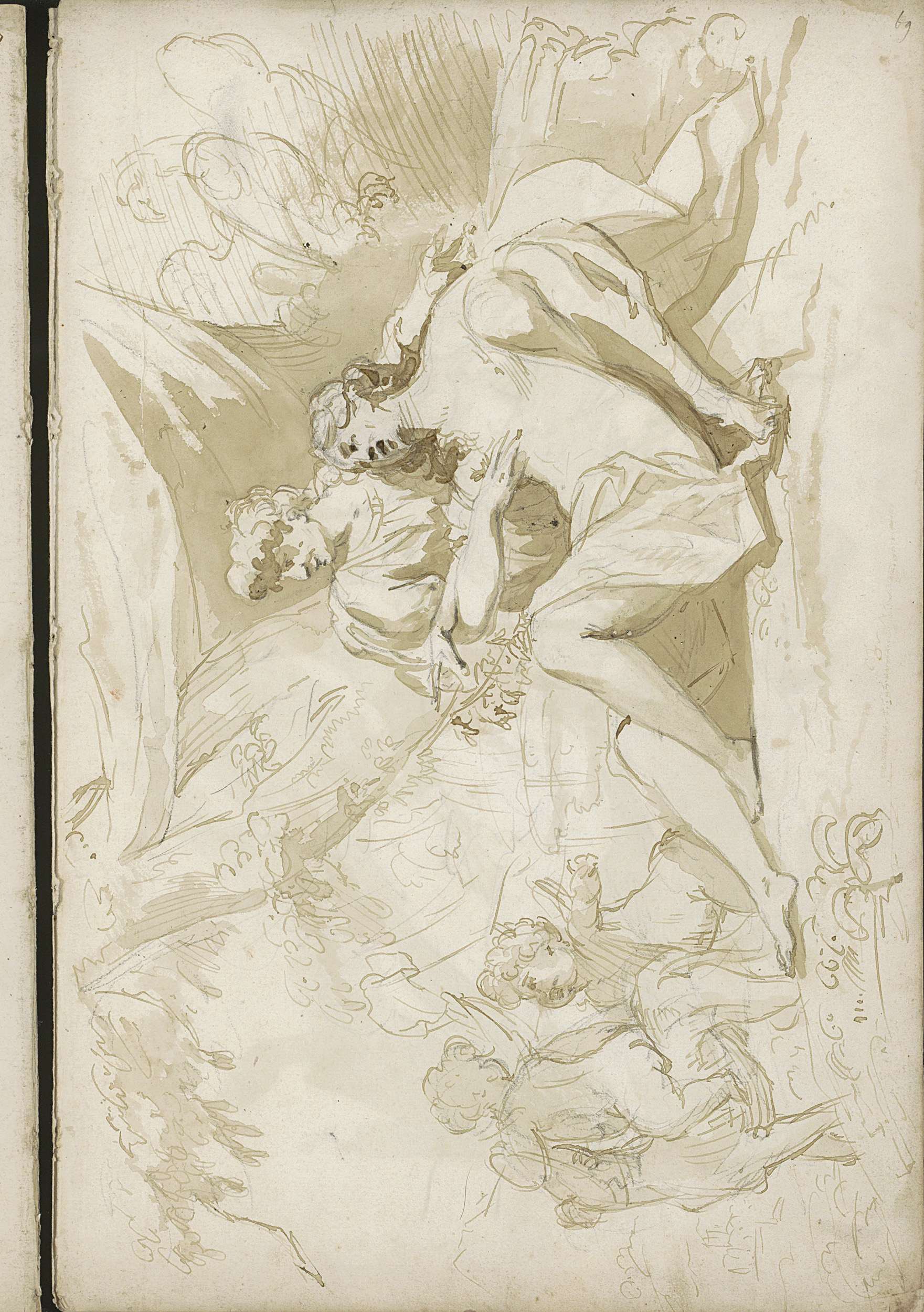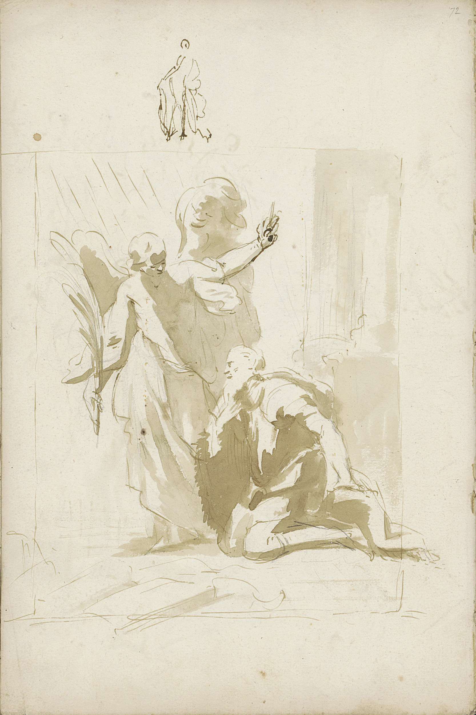 Studieblad met Madonna, heiligen, engelen en figuren...