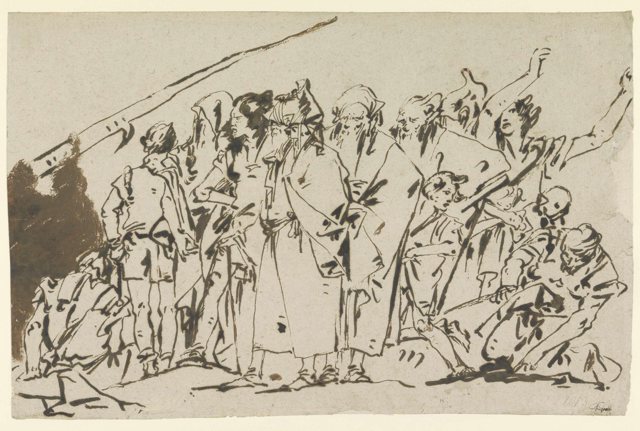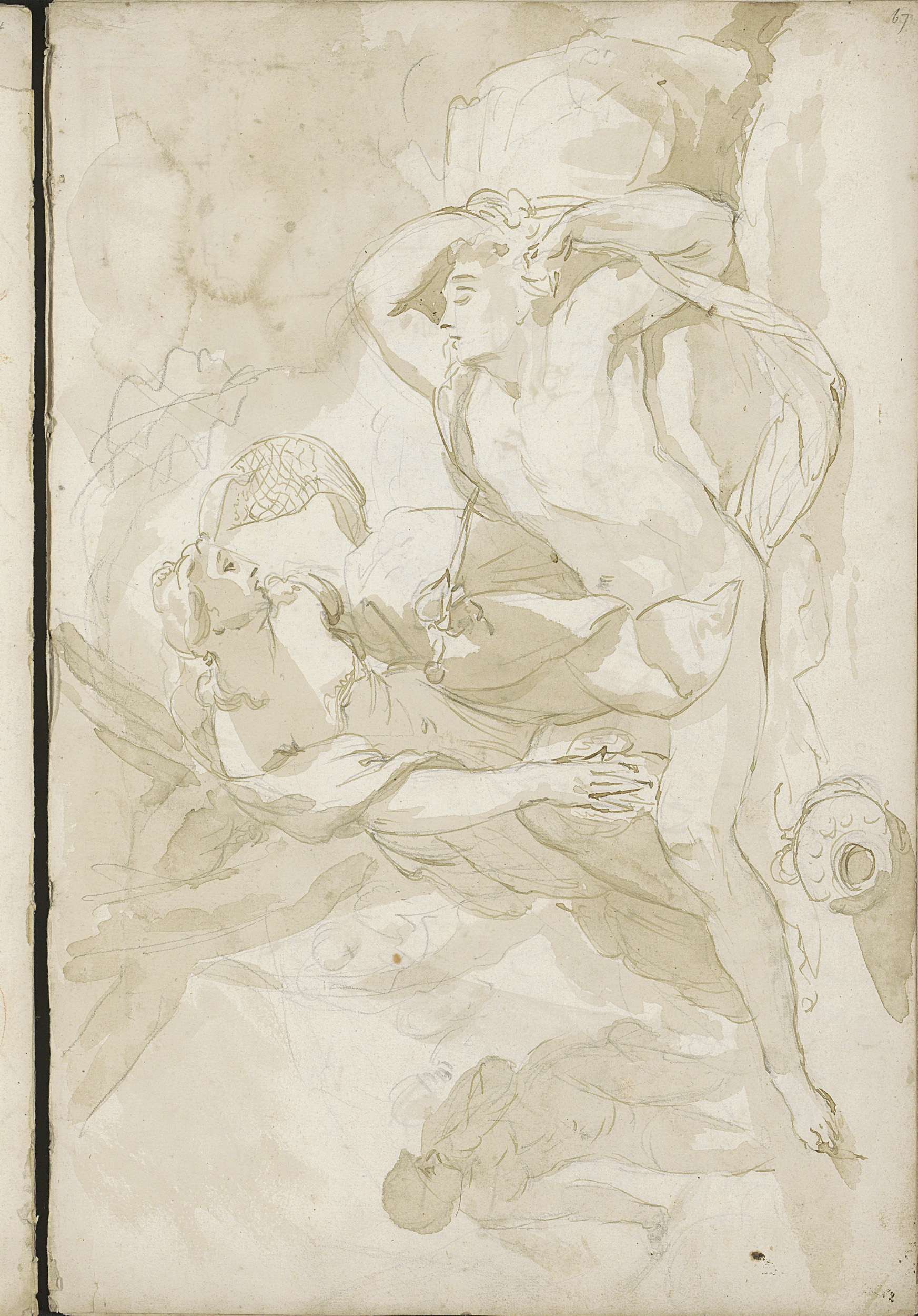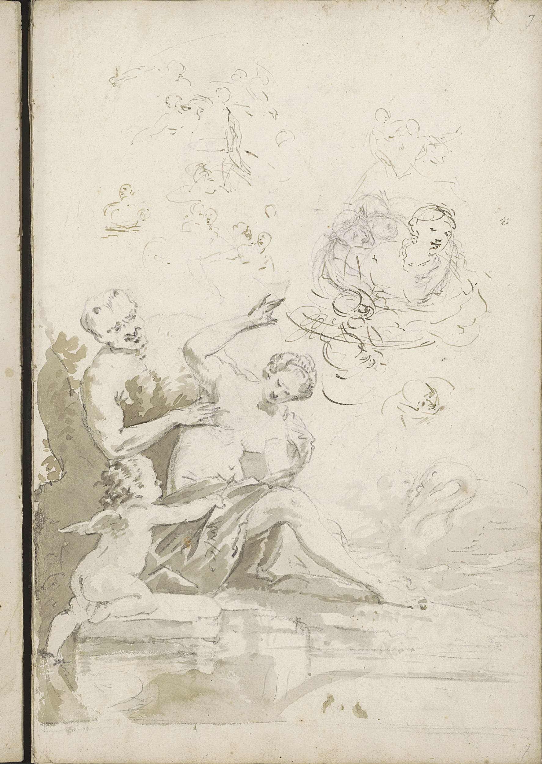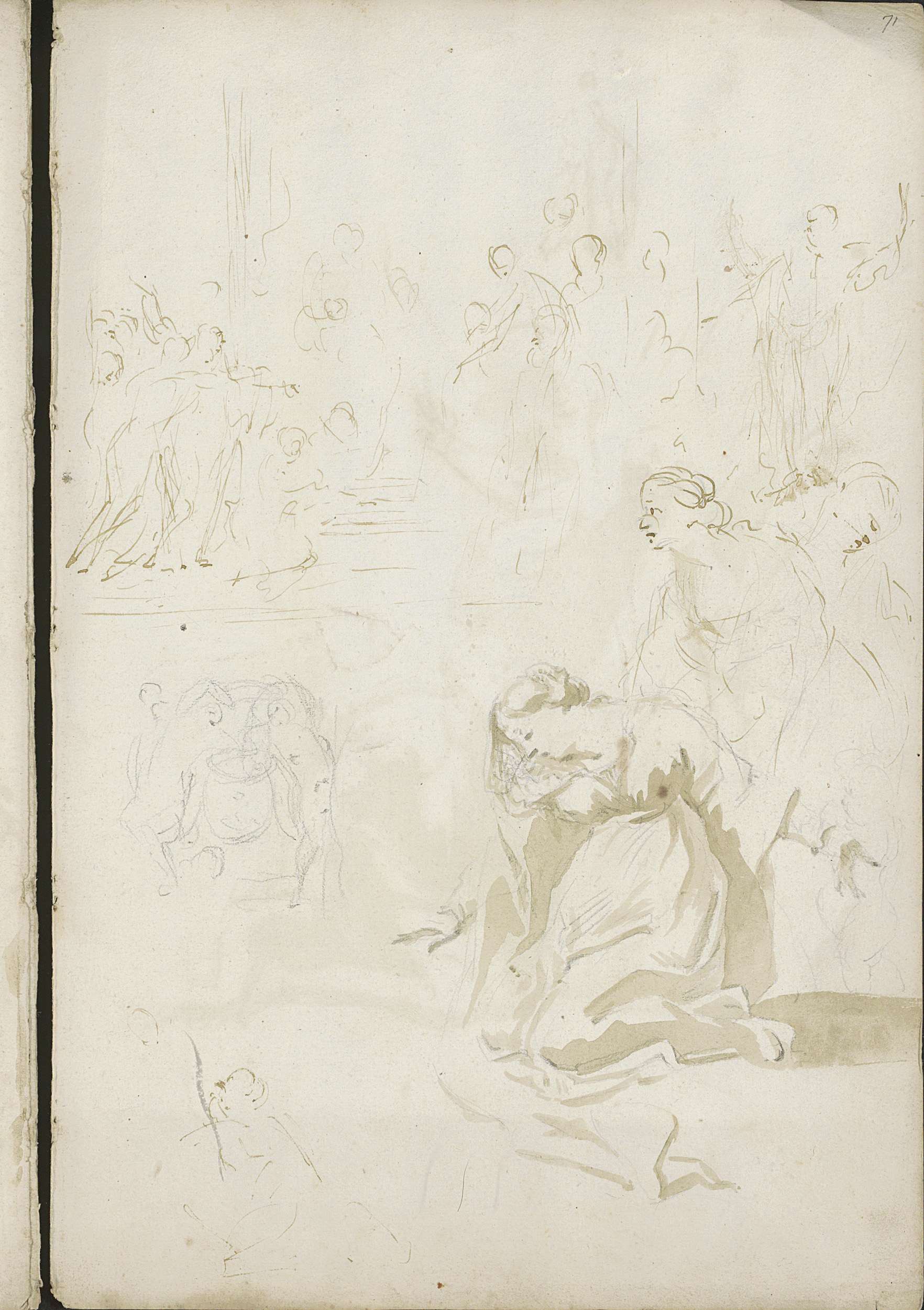 Studieblad met Madonna, heiligen, engelen en figuren...
