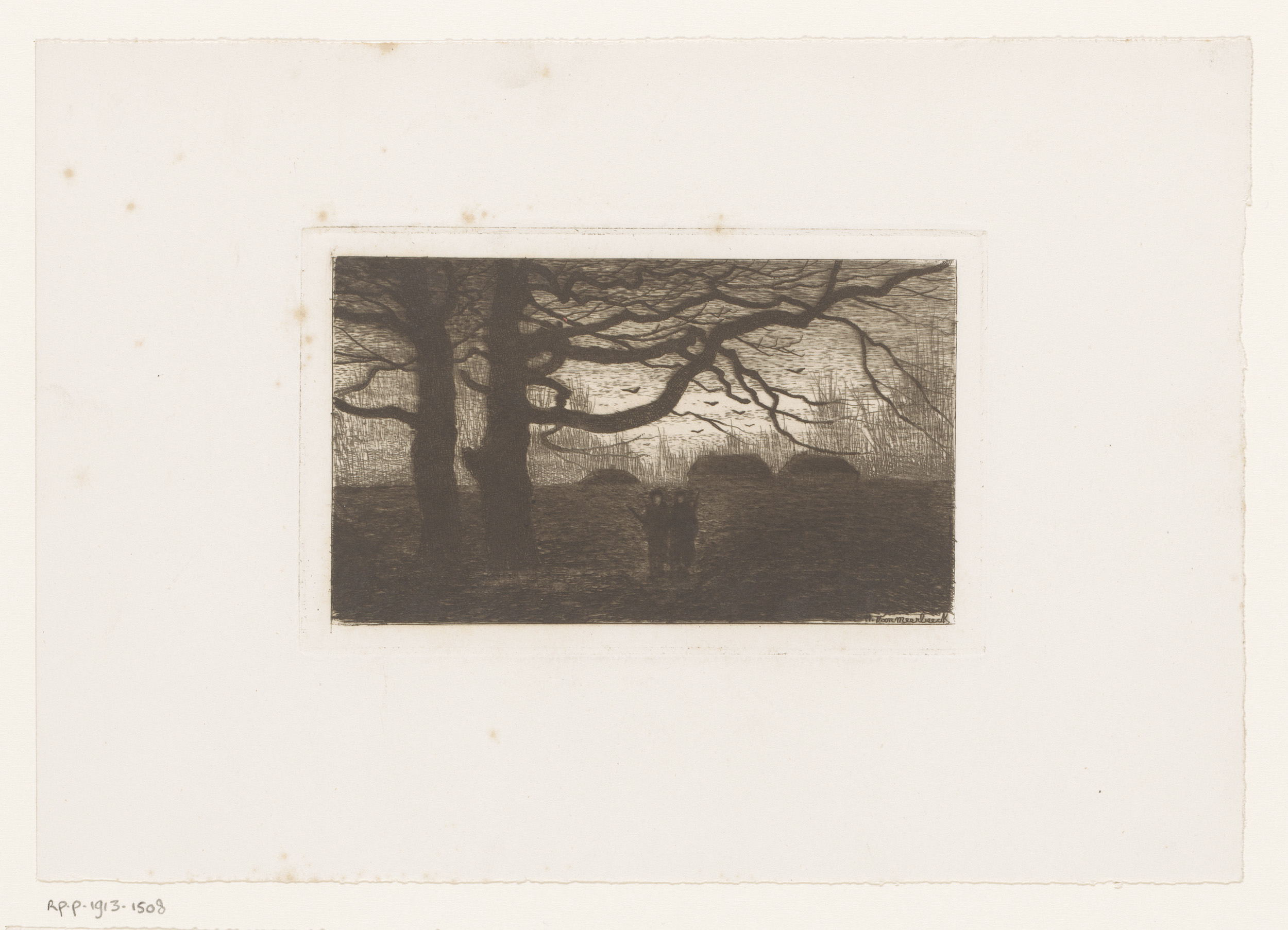 Landschap met vijf grote kale bomen