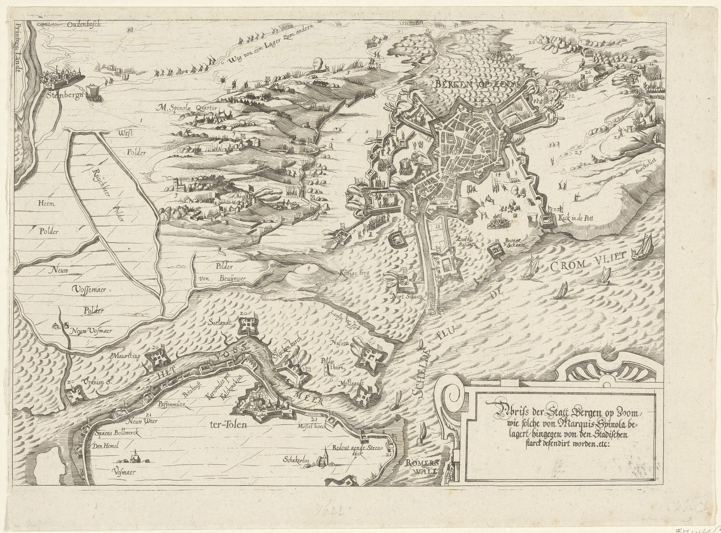 Kaart van het beleg van Bergen op Zoom, 1622