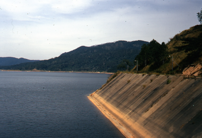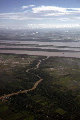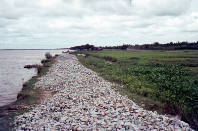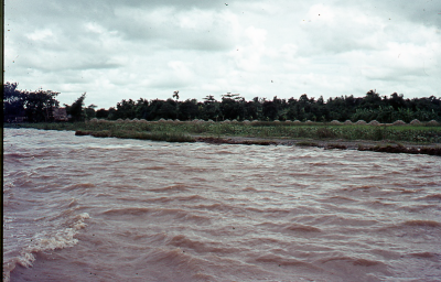 Rivier met oeverbescherming in Vietnam, februari 1974.