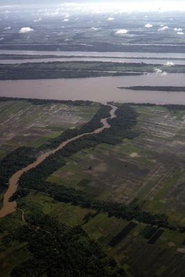 Luchtfoto van laagland in Vietnam.