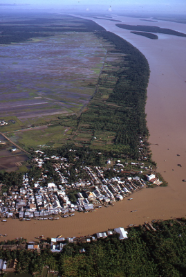 Dorp aan een rivier in Vietnam, juli 1974.
