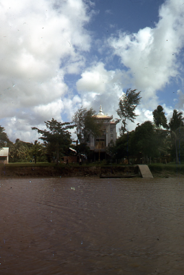 Tempel aan een rivier in Vietnam, juli 1974.
