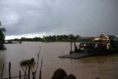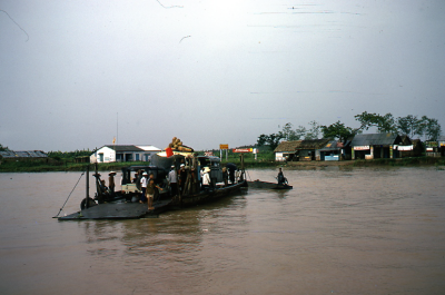 Veerpont over een rivier in Vietnam, juli 1974.