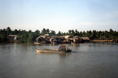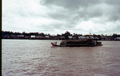 Boot op een rivier in Vietnam, juli 1974.
