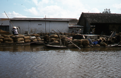 Bootjes beladen met zakken, vermoedelijk met landbou...