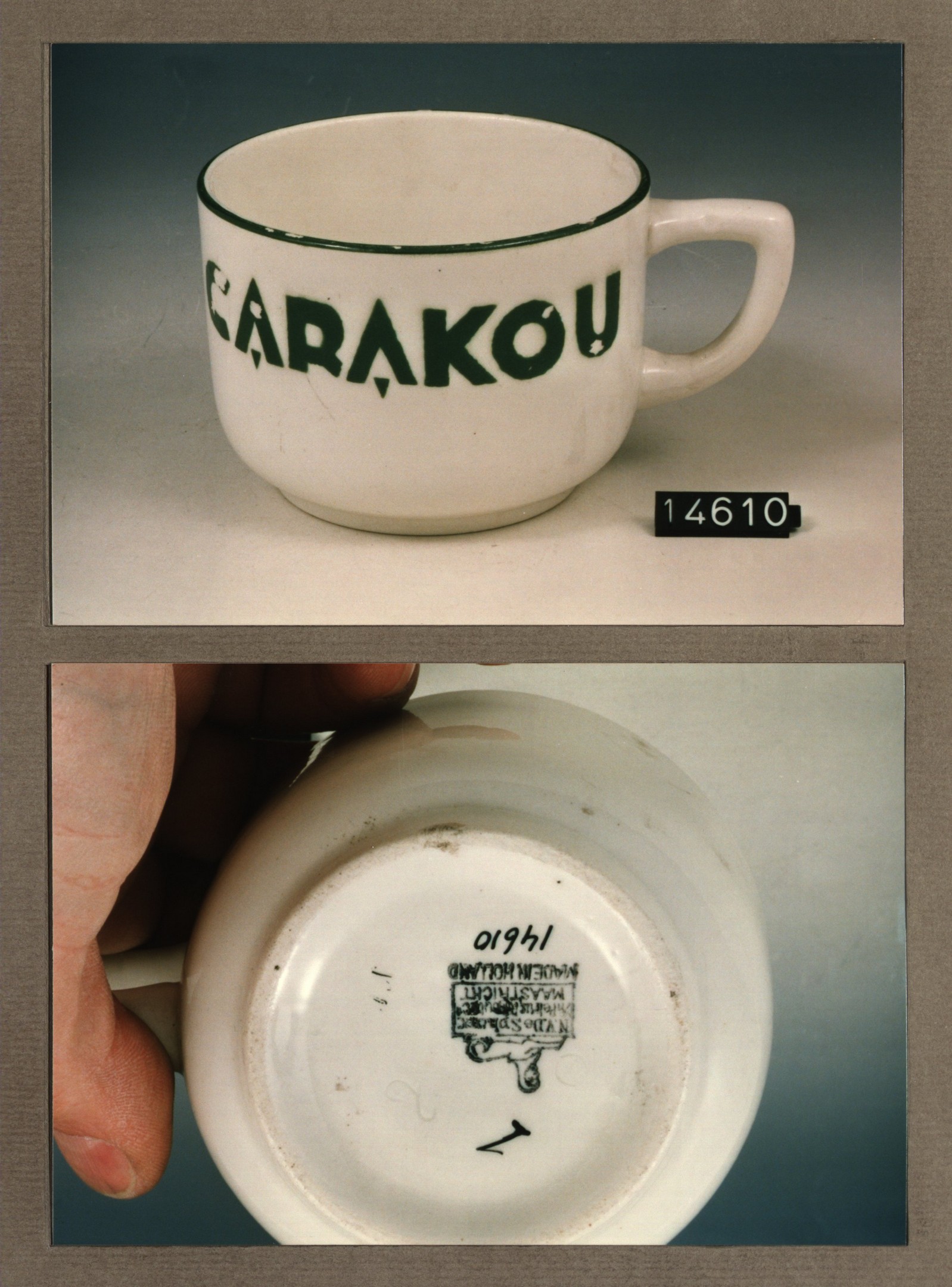 Kop met opschrift met decor Carakou