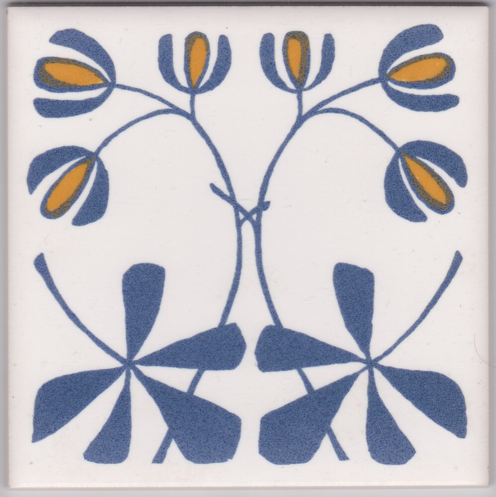 Tegel in zeefdruk, met voorstelling: decor Knot Gard...
