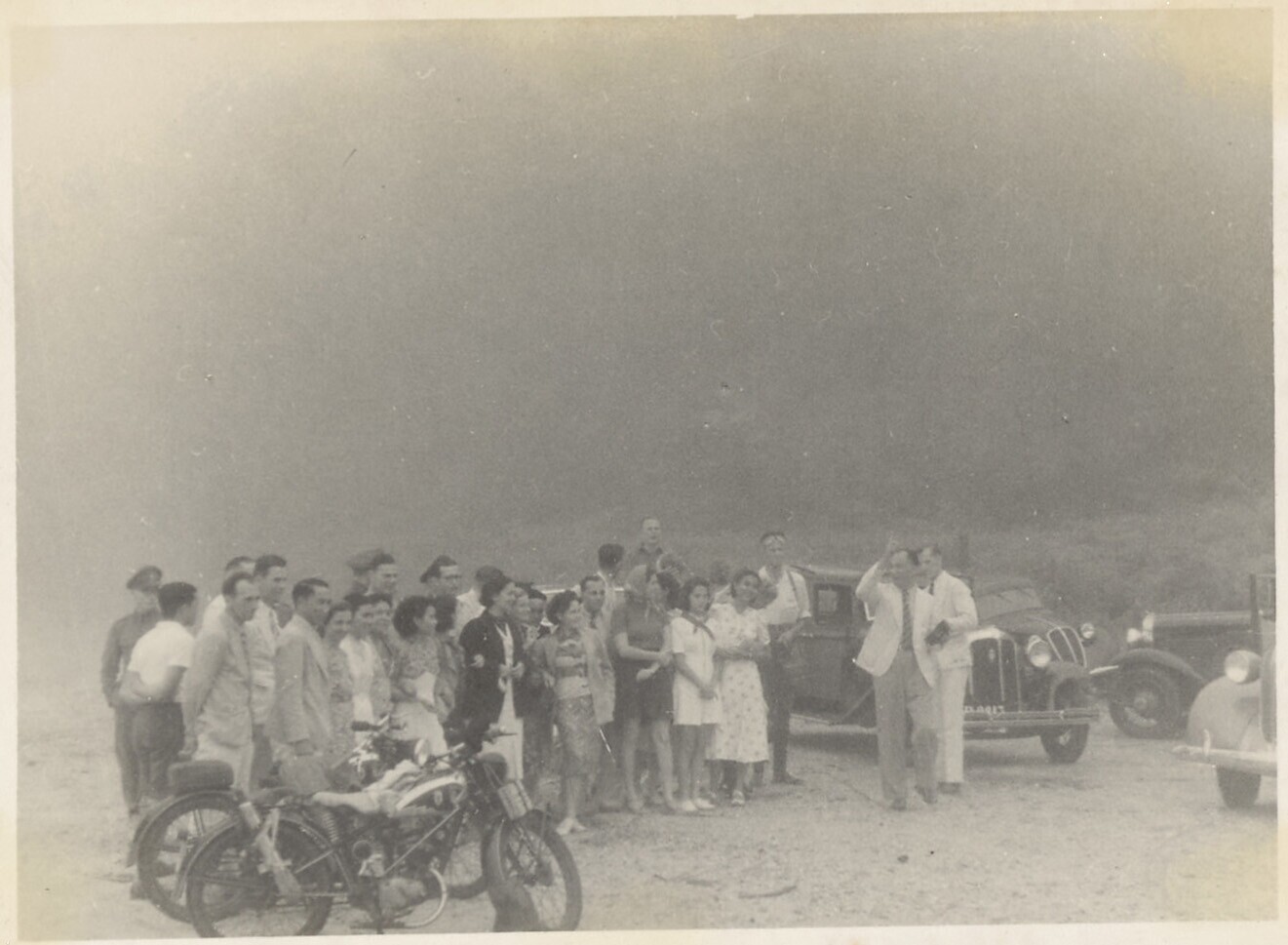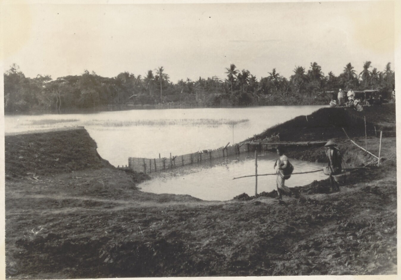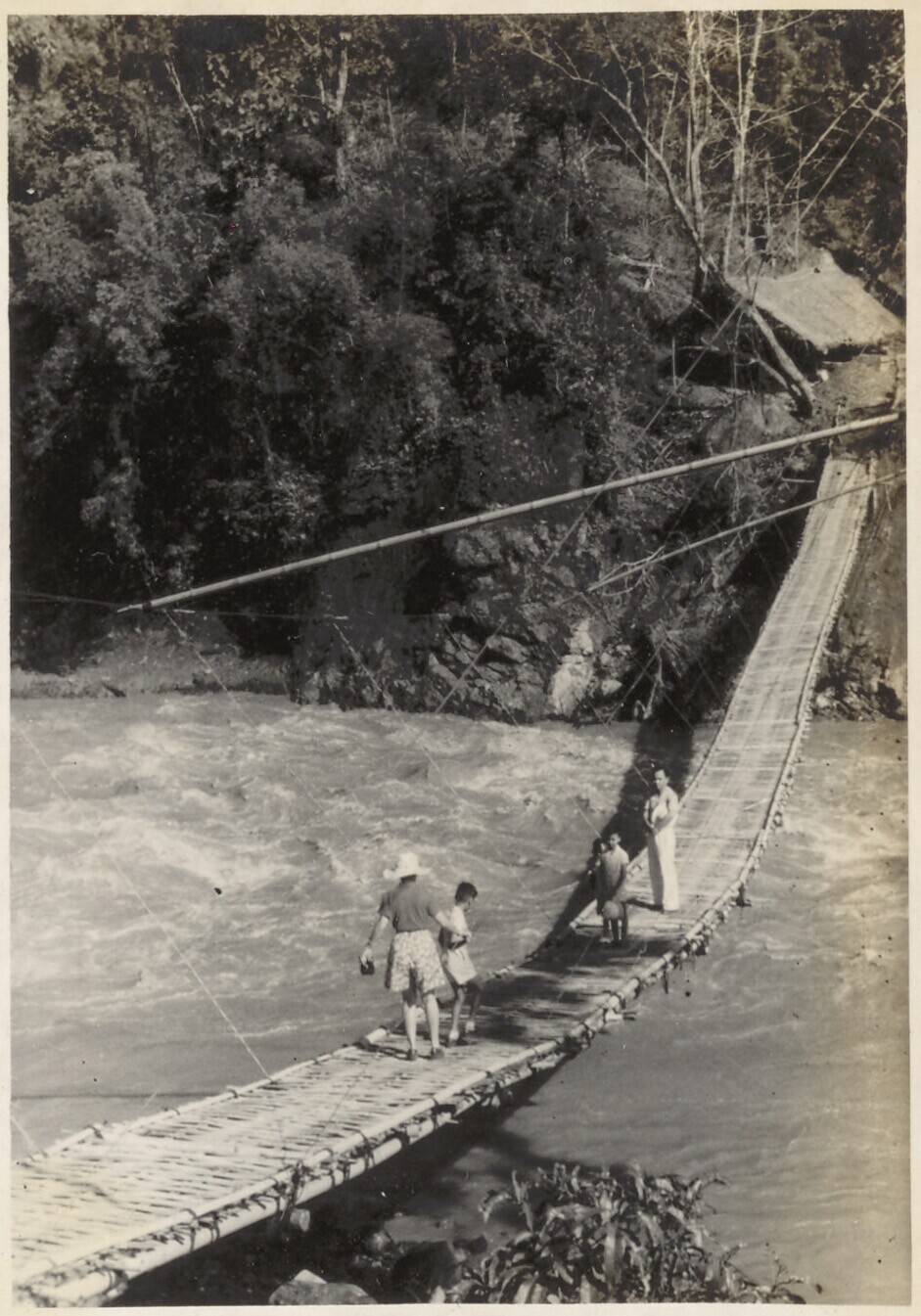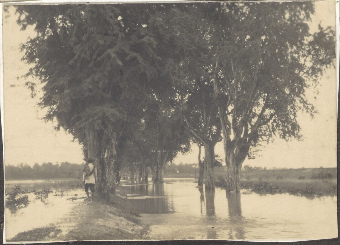 Fam. Bokma bij overstroomde brug te Indramajoe