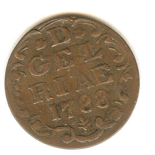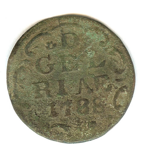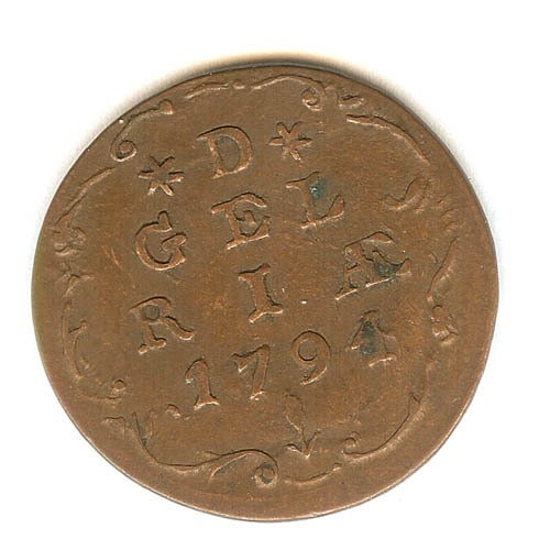 Duit met op de voorzijde D GEL RIAE met jaartal in c...