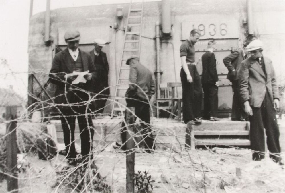 Arbeiders bij de bunker in de Hoven