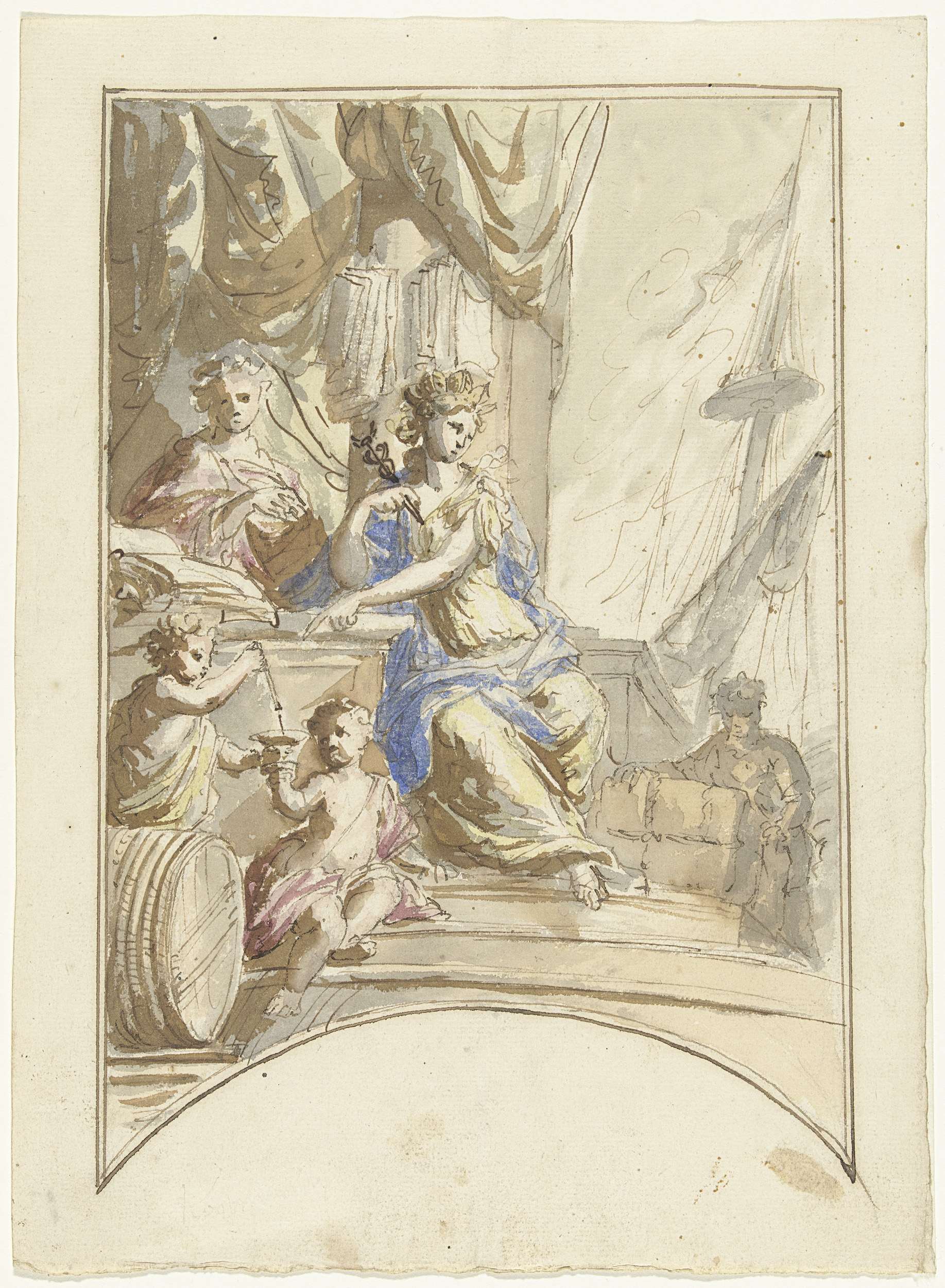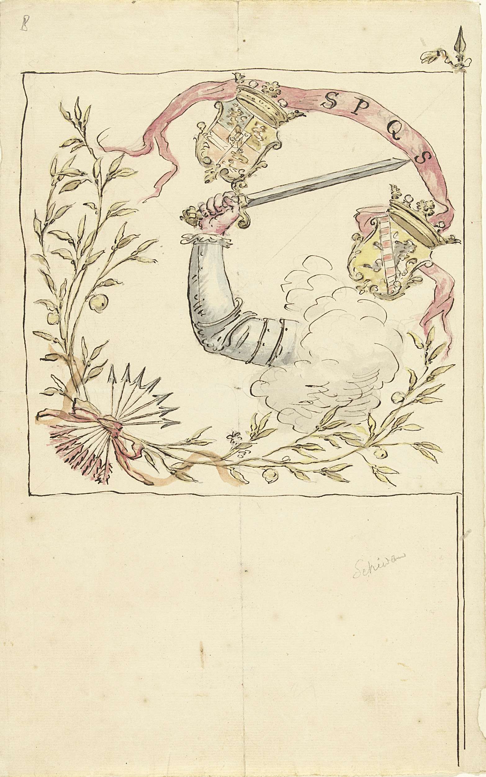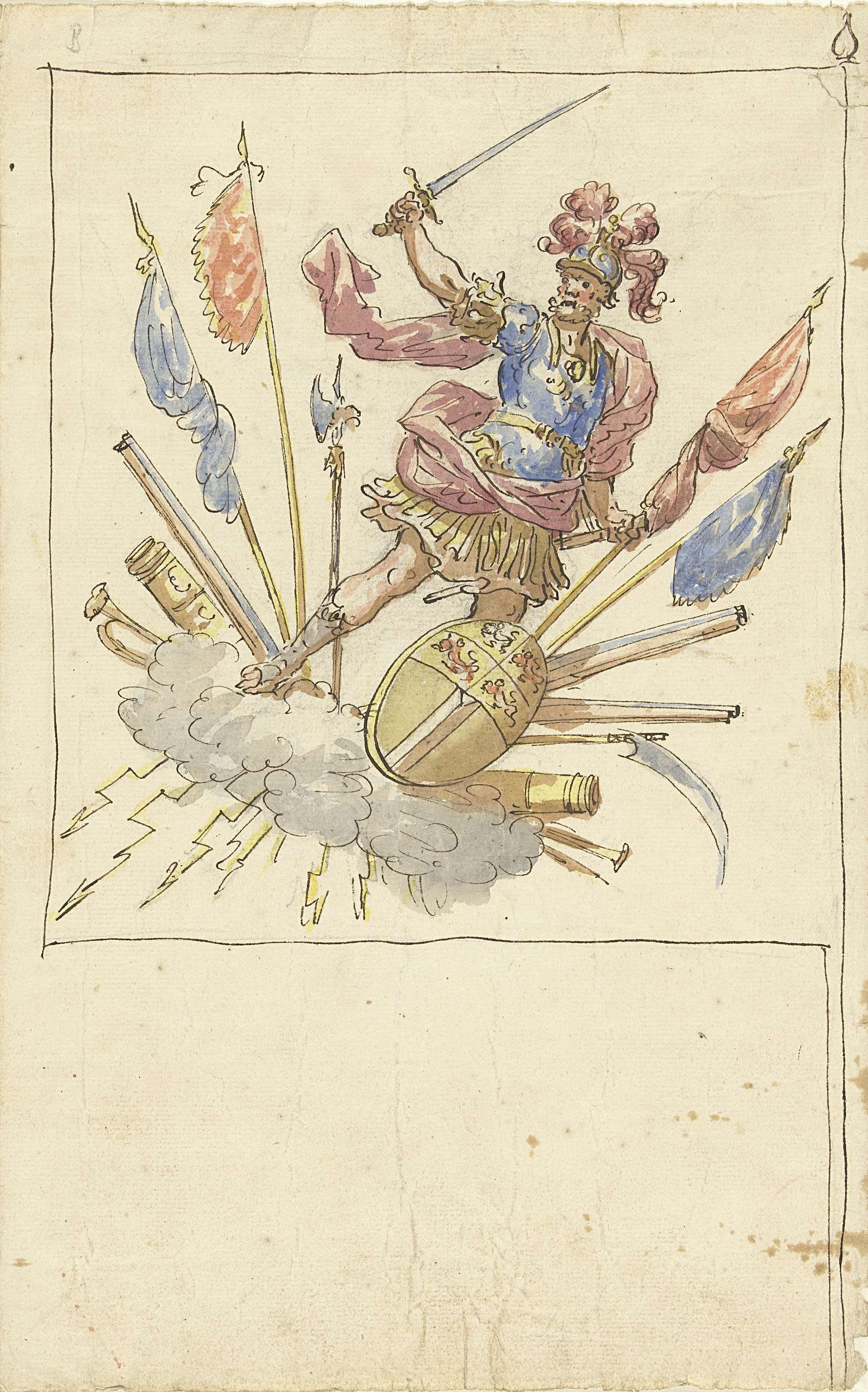 Ontwerp voor een banier met Mars, wapentuig en het w...