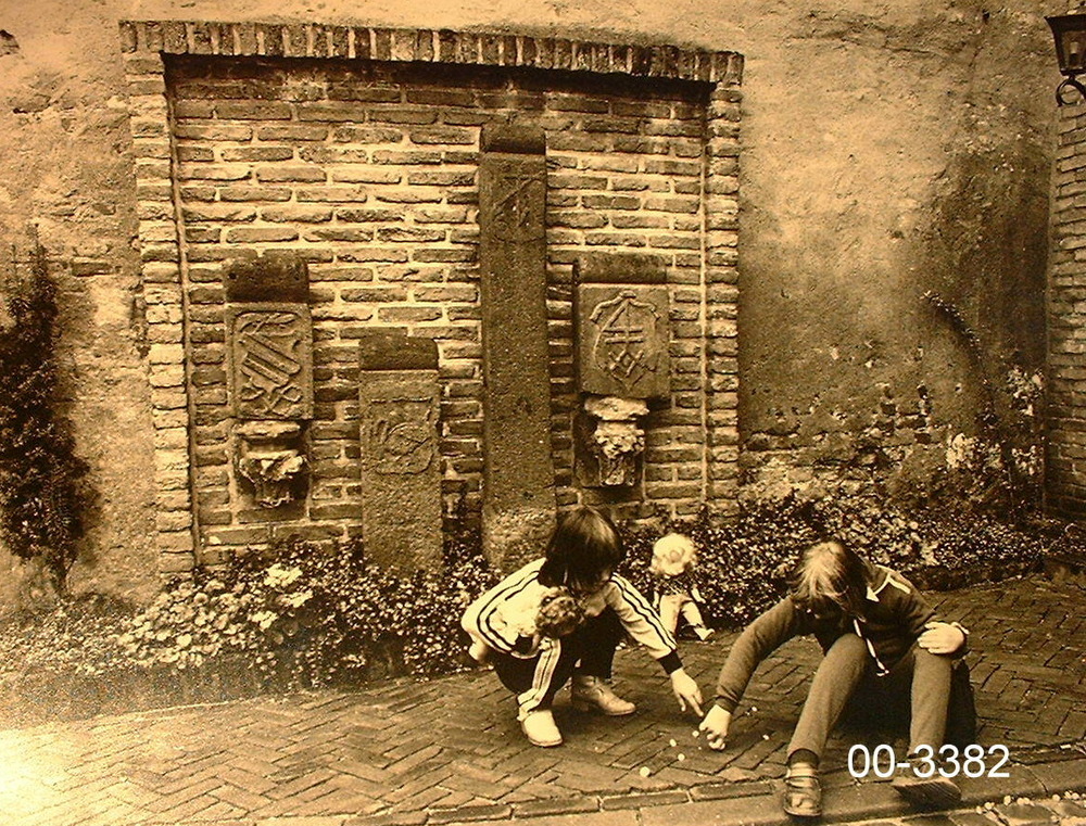 Oude gevelstenen met spelende kinderen hoek Langestr...