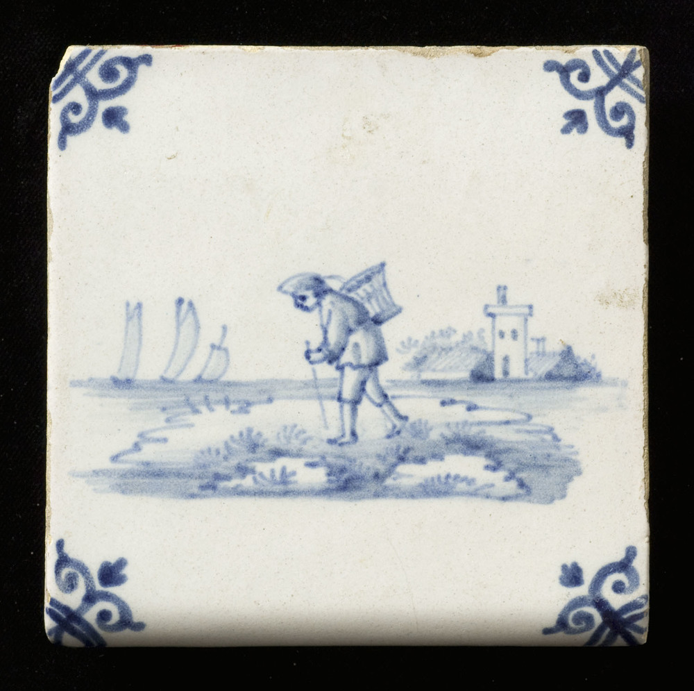 Tegel van keramiek, tinglazuur, voorstellende een fi...
