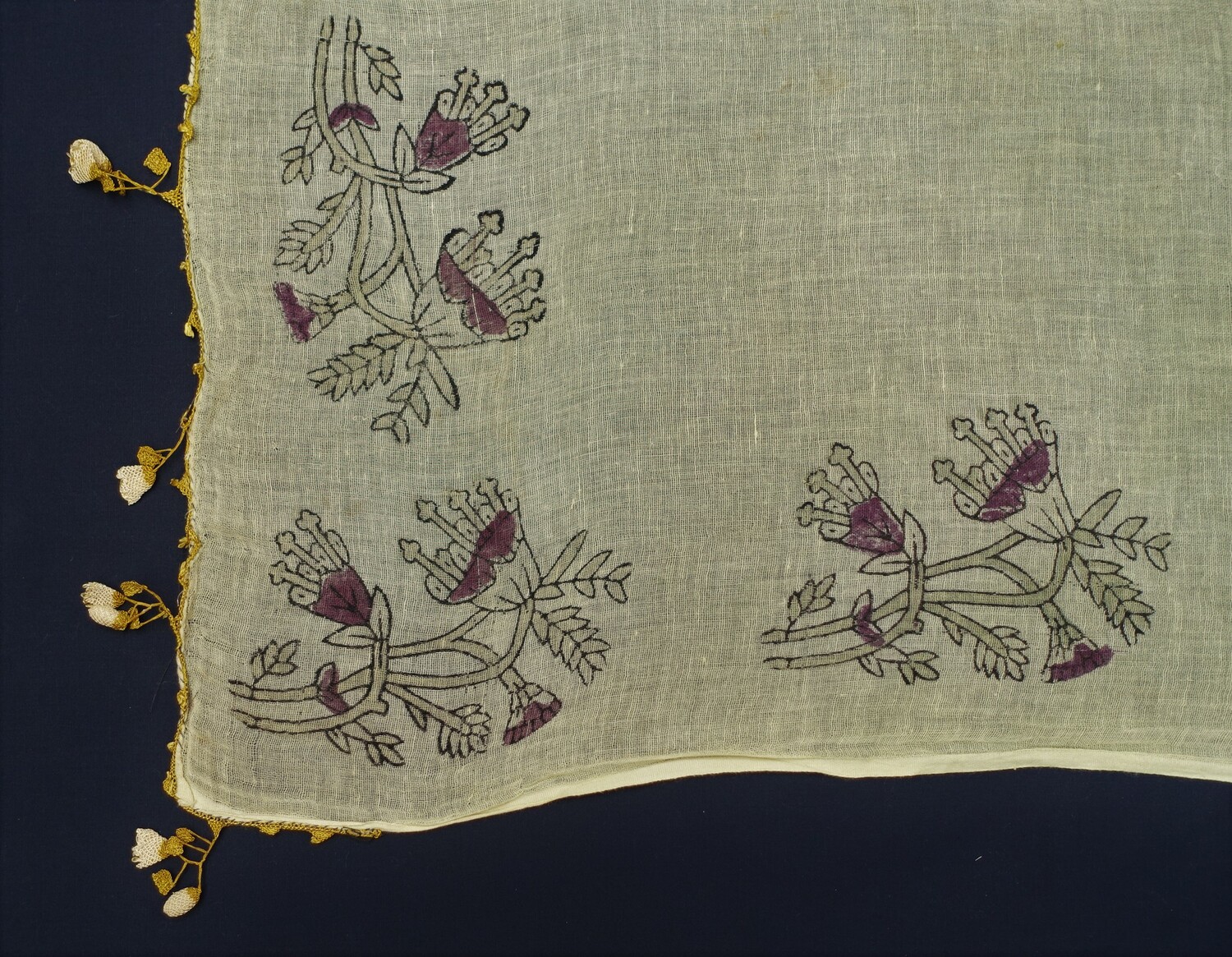 Hand spun and woven block printed (resist) (56)