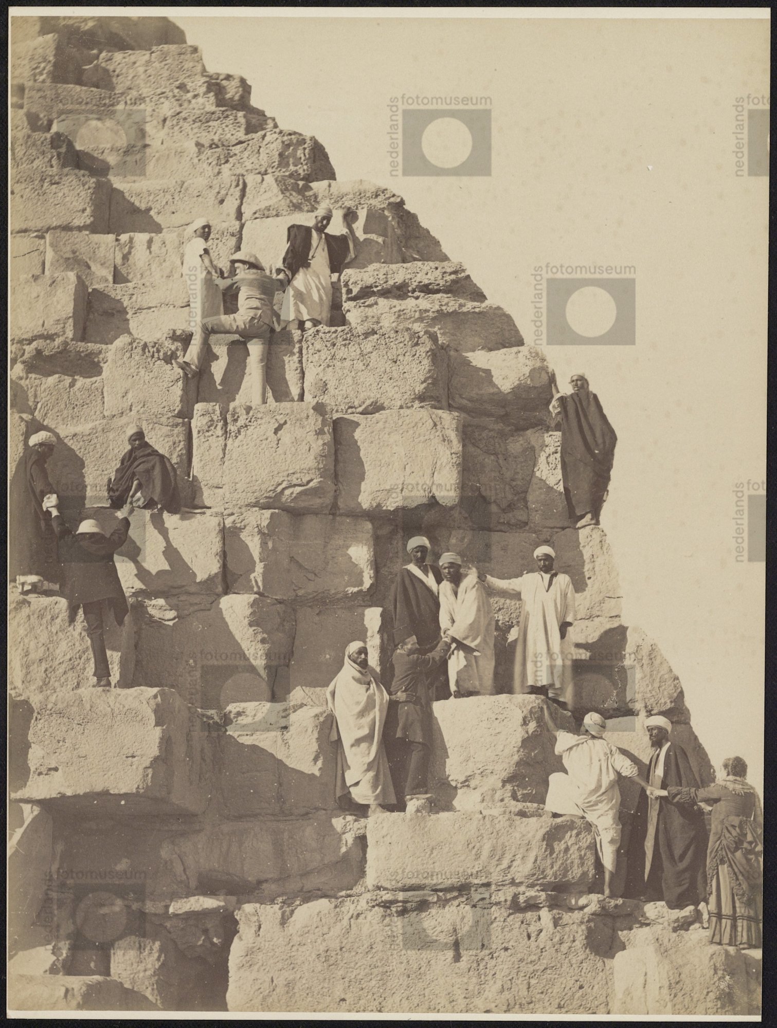 Beklimming van pyramide door toeristen, Gizeh, Egypt...