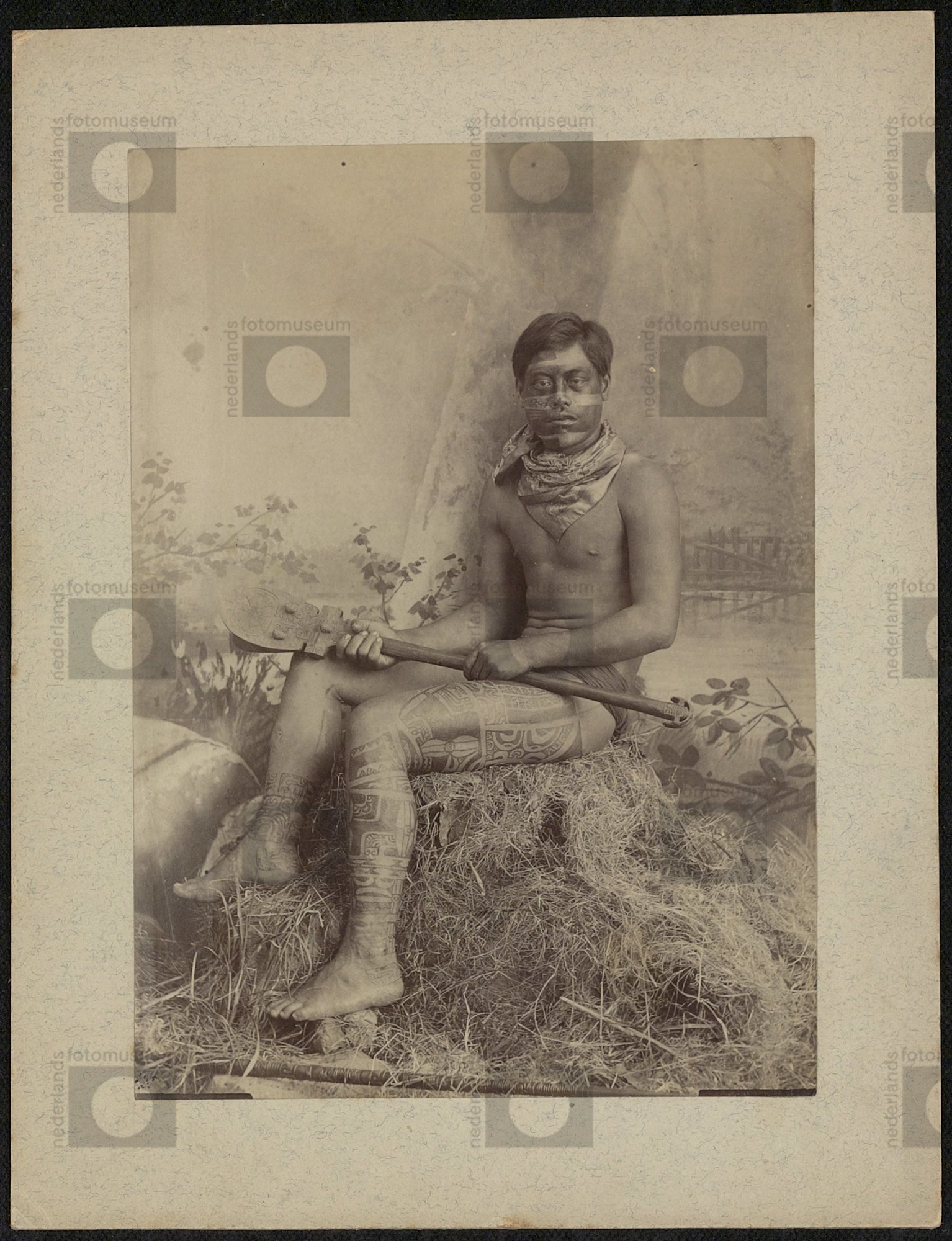 Getatoeëerde man, Marquesas-eilanden, Frans Polynesi...