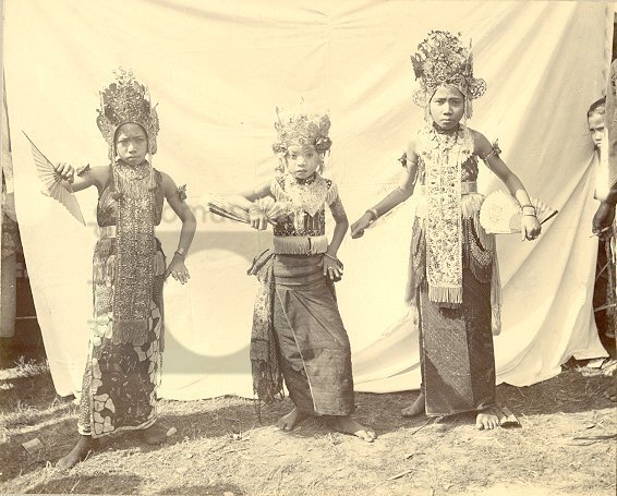 Drie wajang wong danseressen, Bali, Indonesië (1890-...