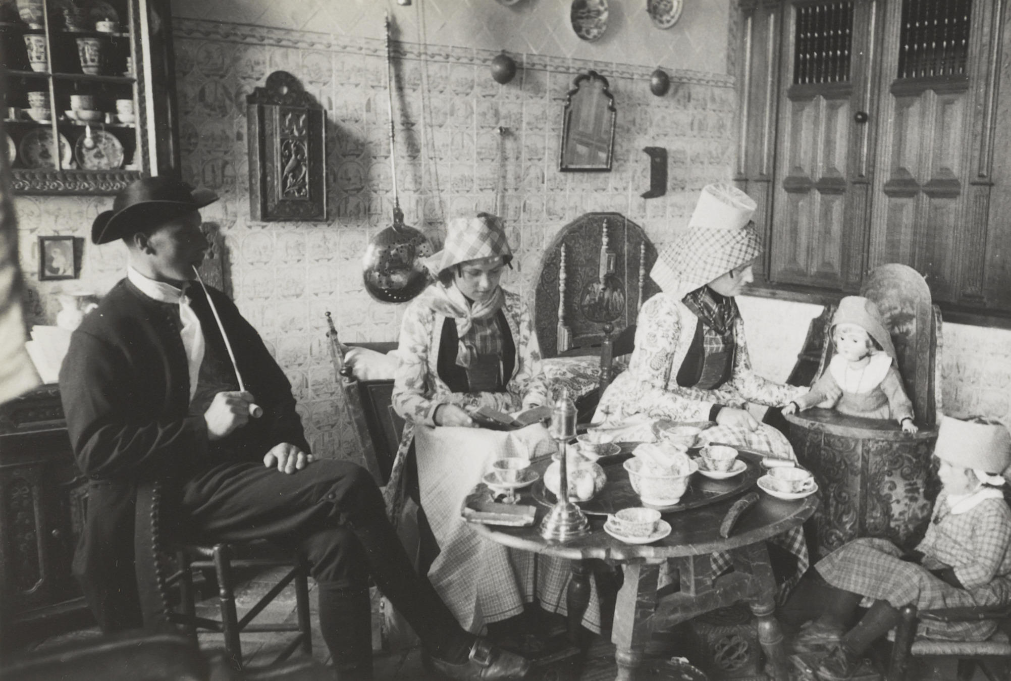 Man, vrouw en meisjes, verkleed in Hindelooper drach...