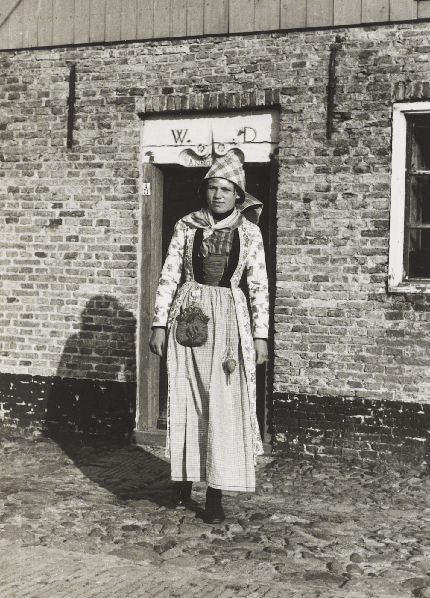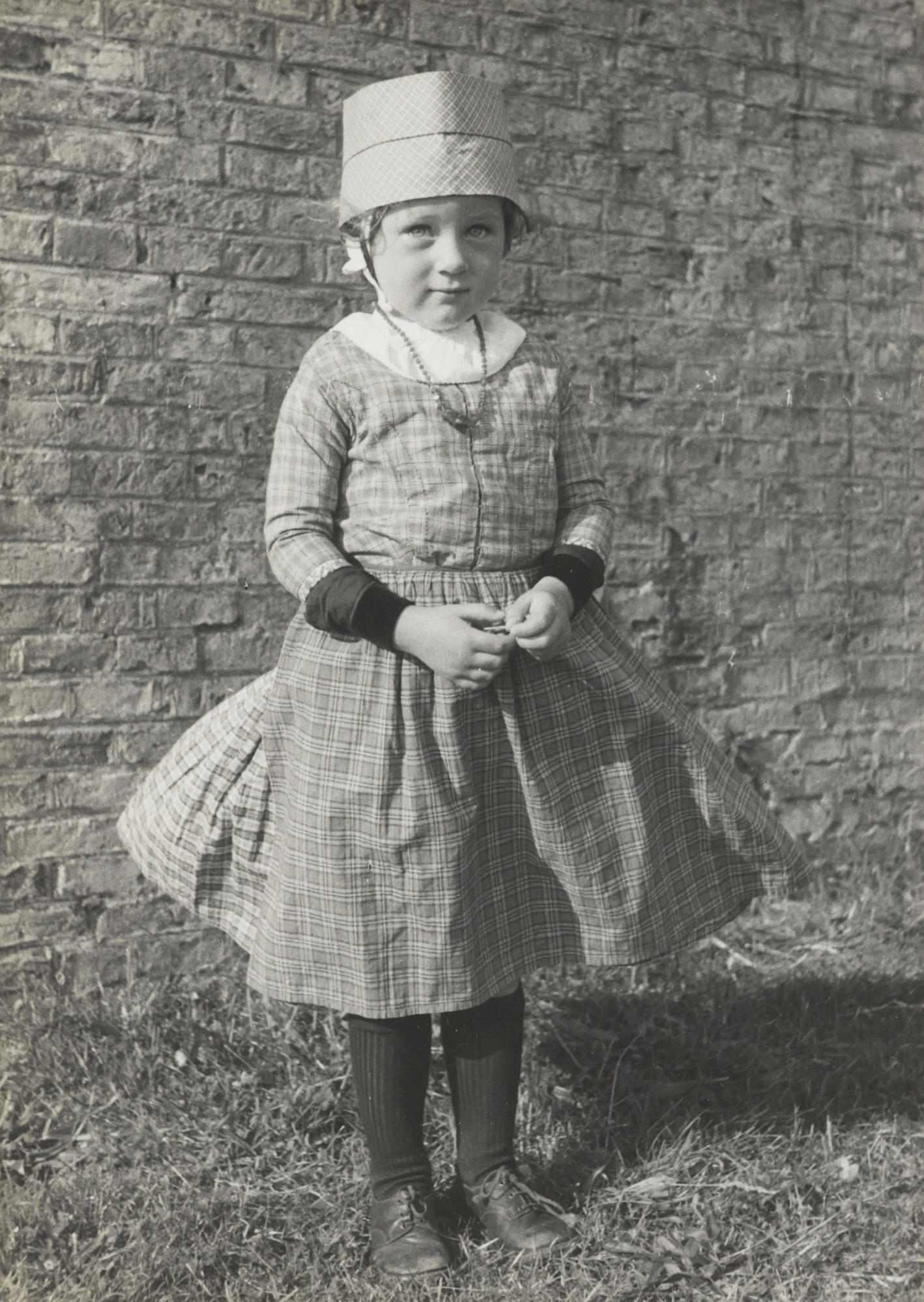 Meisje verkleed in Hindelooper dracht, 1944 (zwart-w...