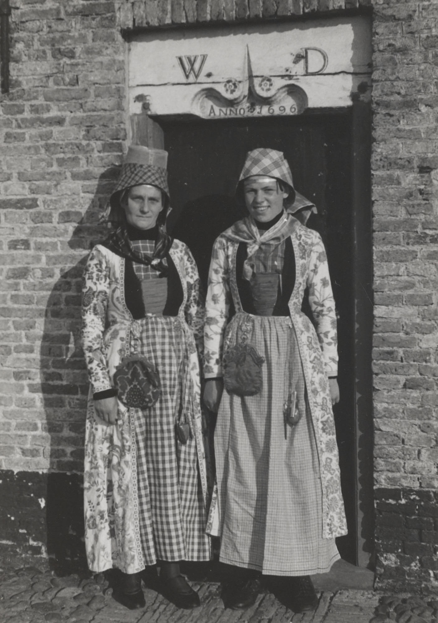 Vrouw en meisje, verkleed in Hindelooper dracht, 194...