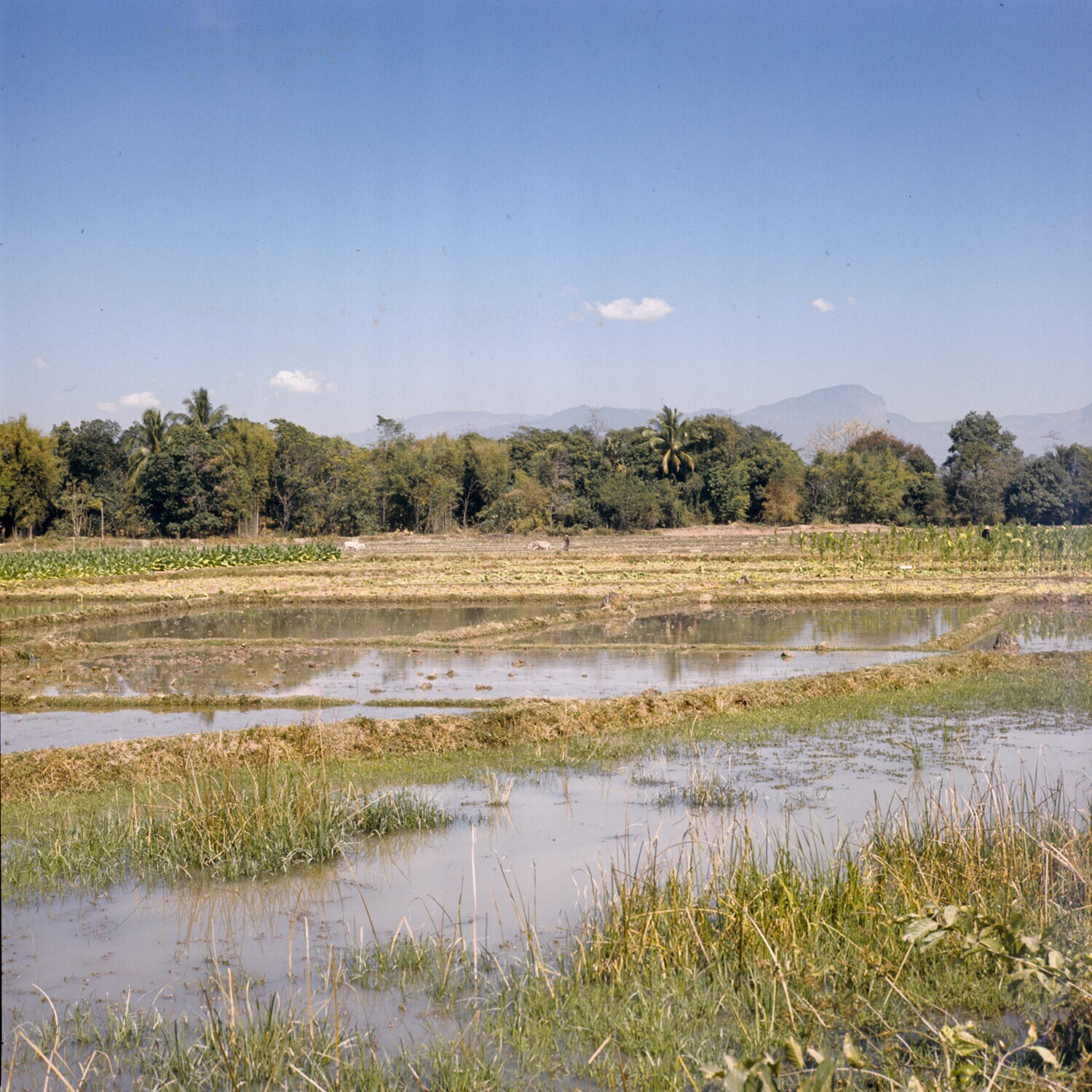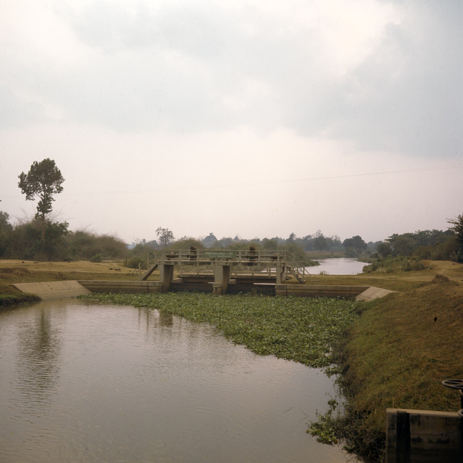 Kleine dam met sluizen tbv irrigatie Ervoor ligt een...