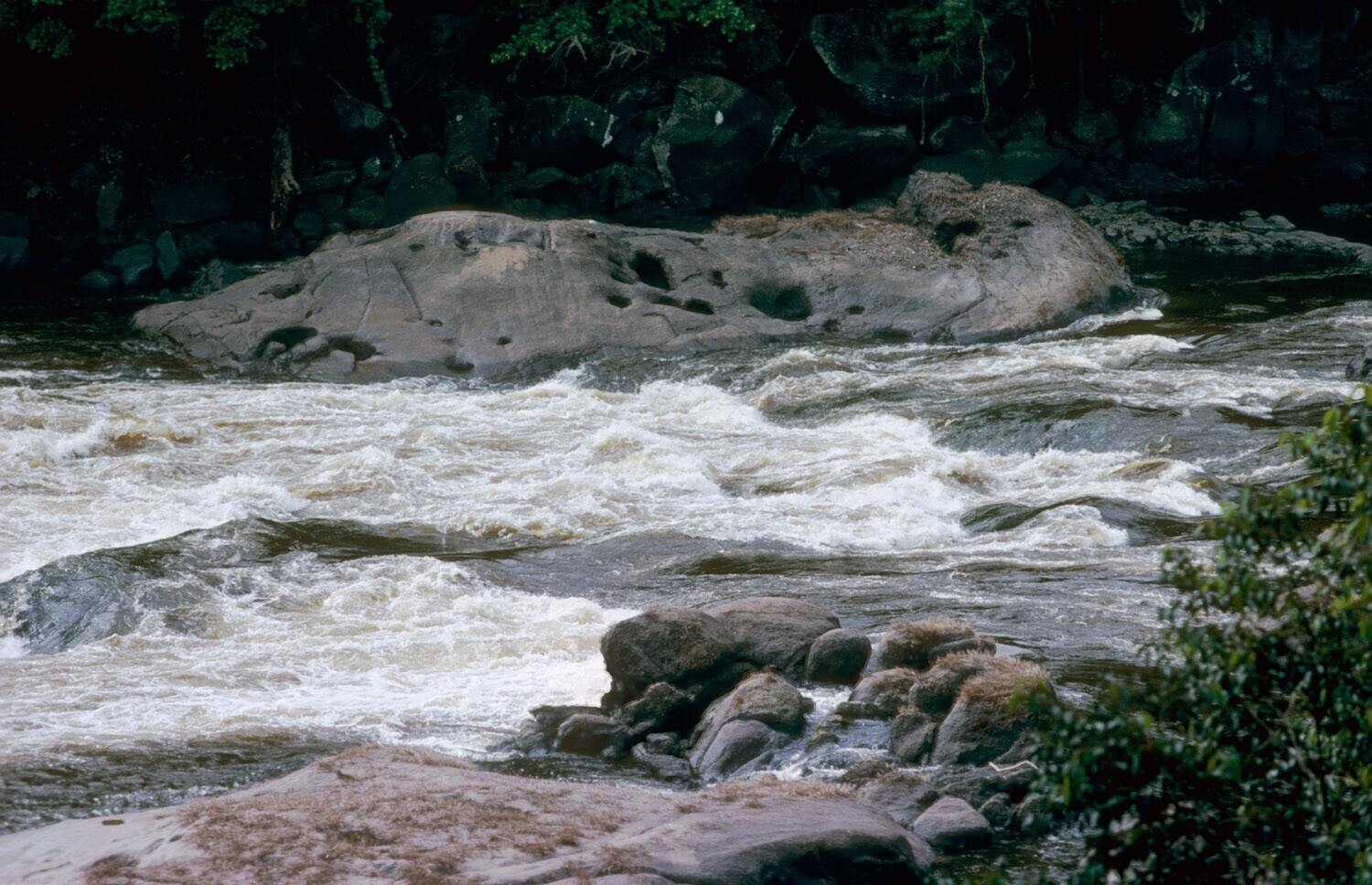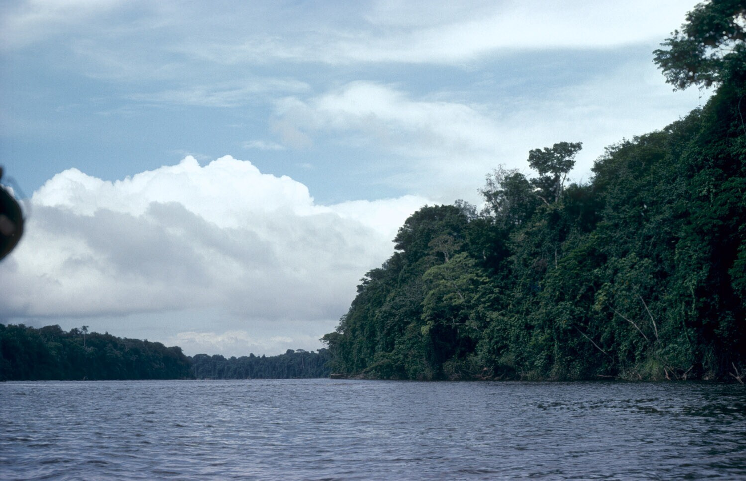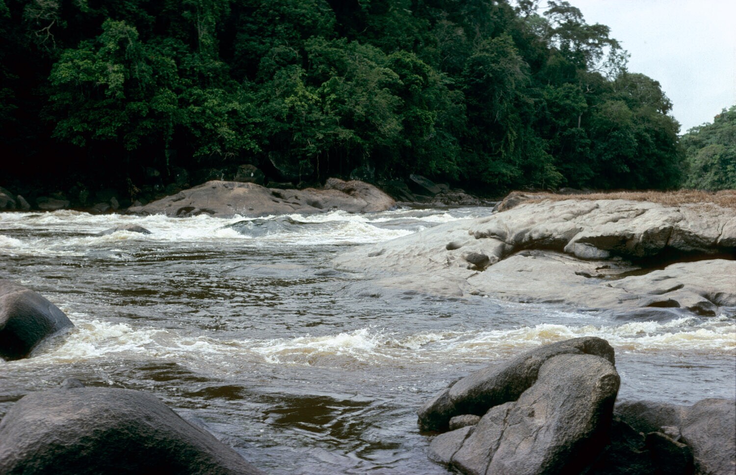 Gezicht op de Coppename rivier, bij het Foengoe-eiland