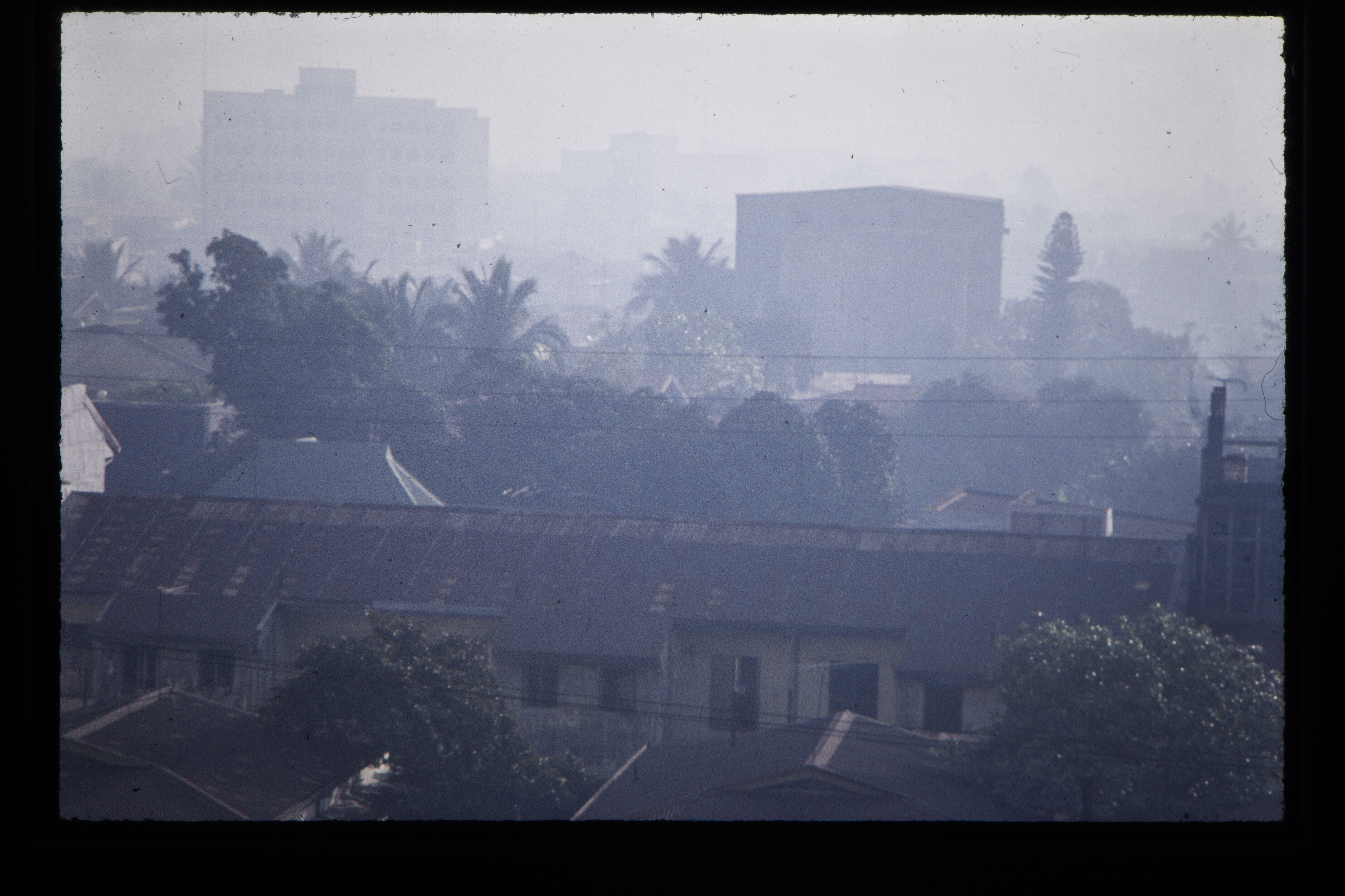 'Luchtvervuiling in Manilla, 's ochtends bij windsti...