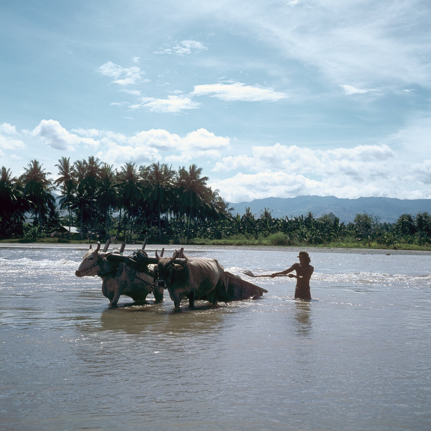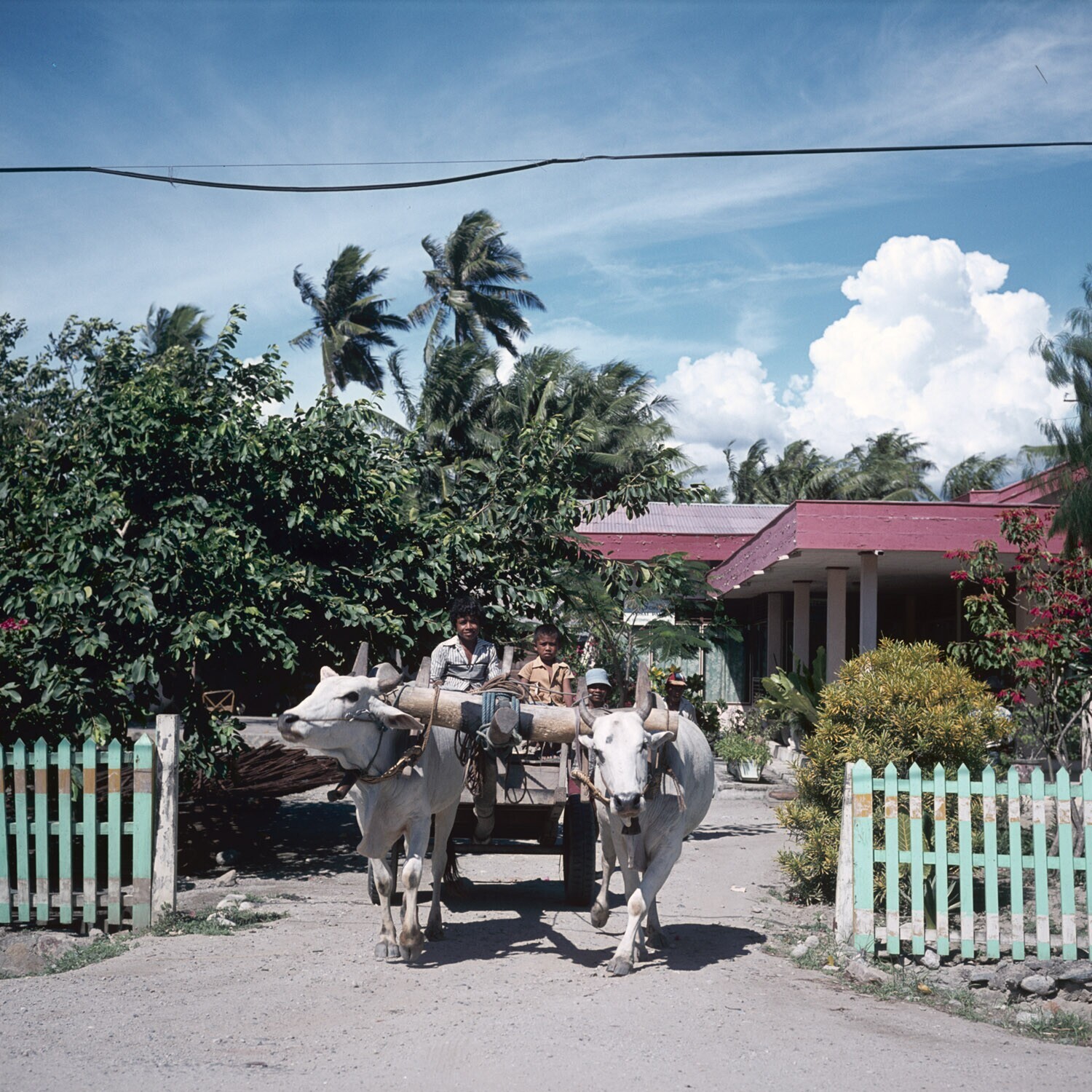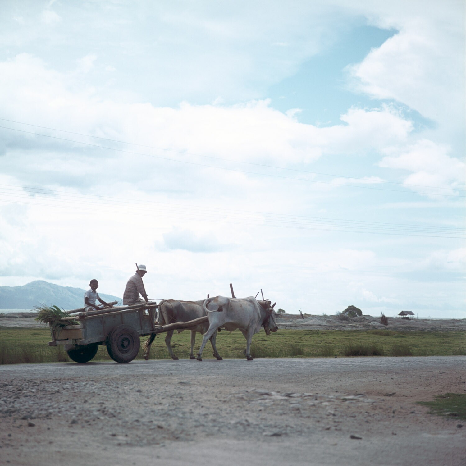 Een kar getrokken door ossen, Sulawesi.
