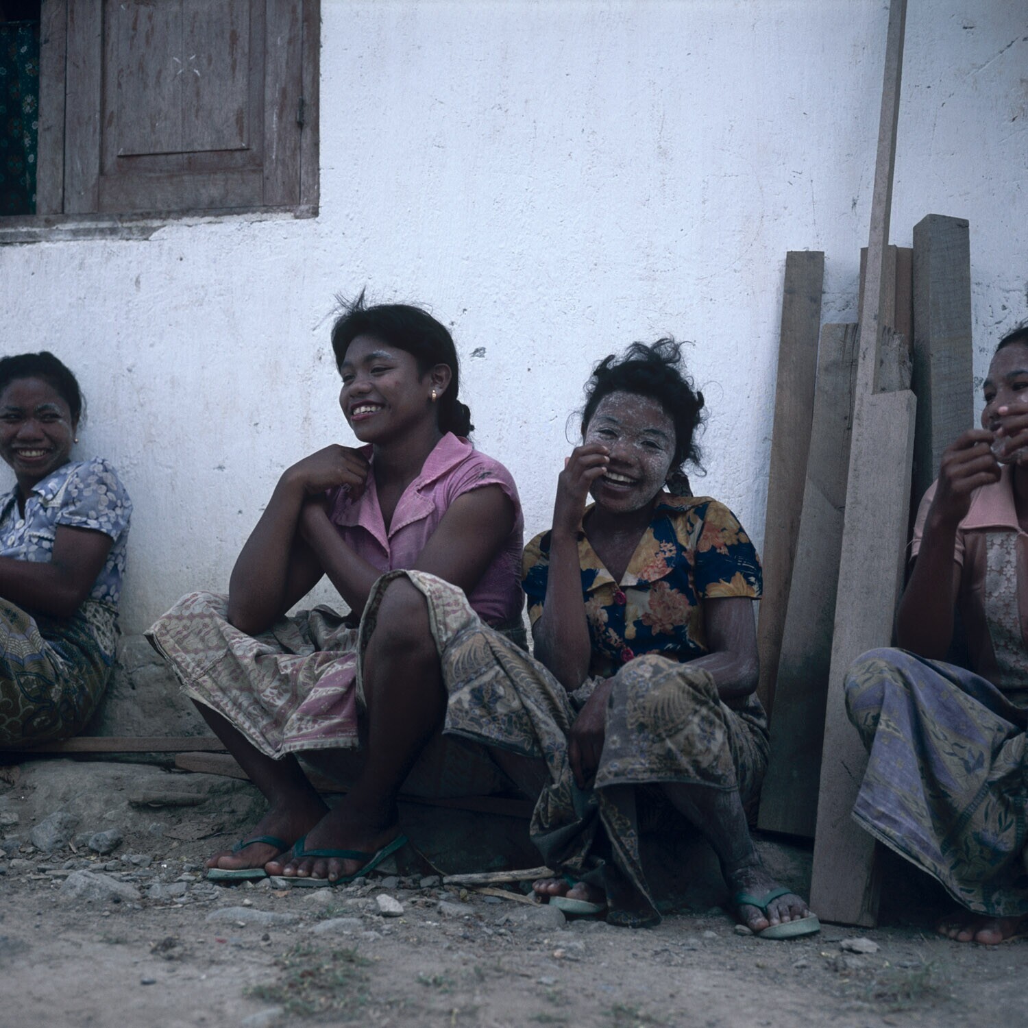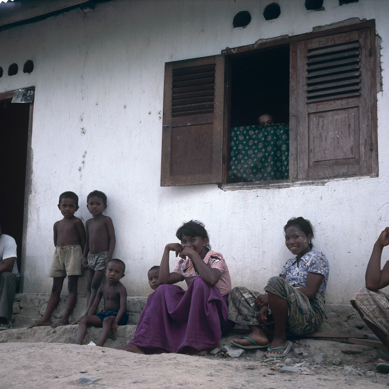 Vrouwen voor een huis, omgeving Palu, Sulawesi. Een ...