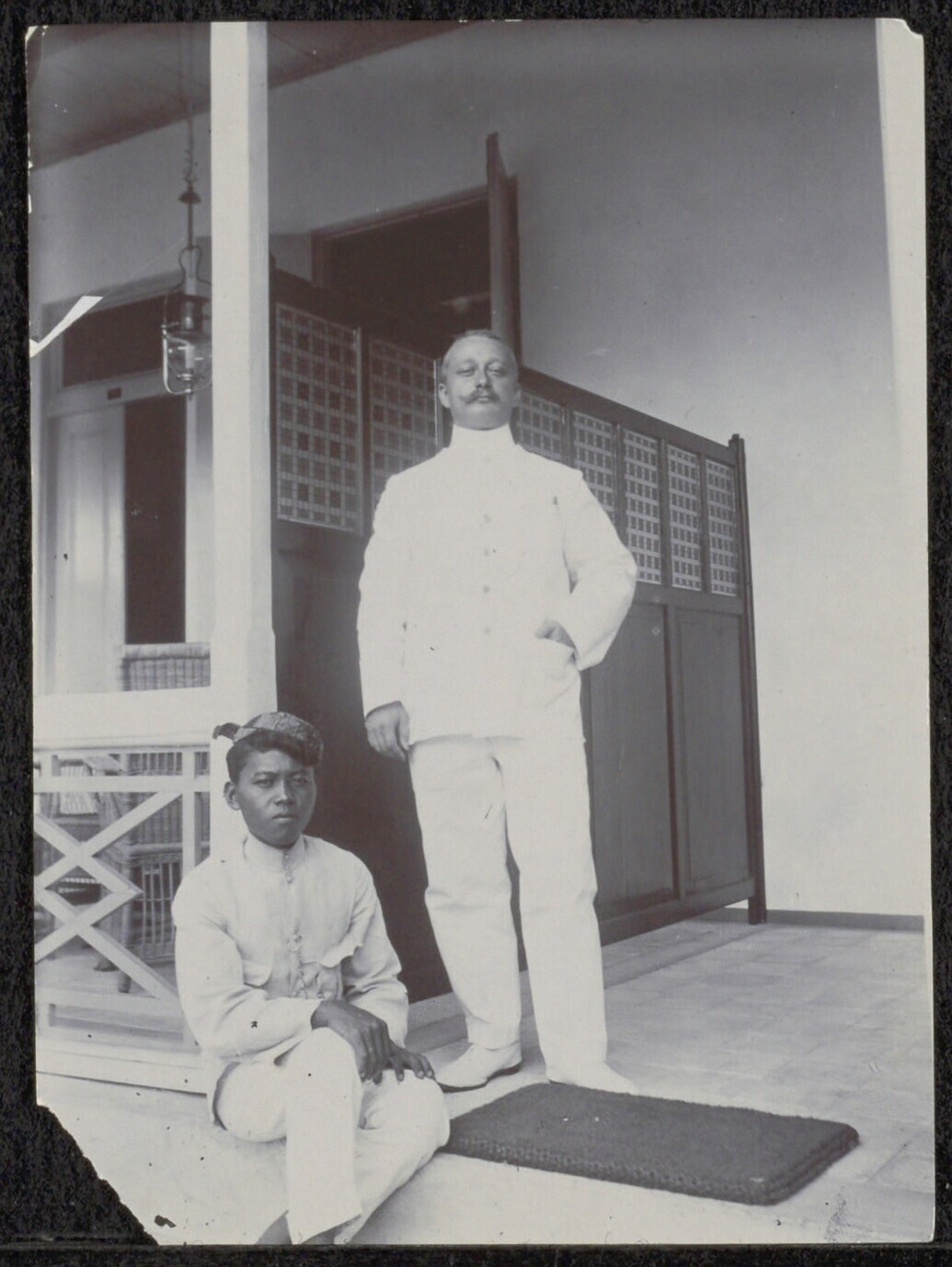 Portret van een man en een jongen op de galerij