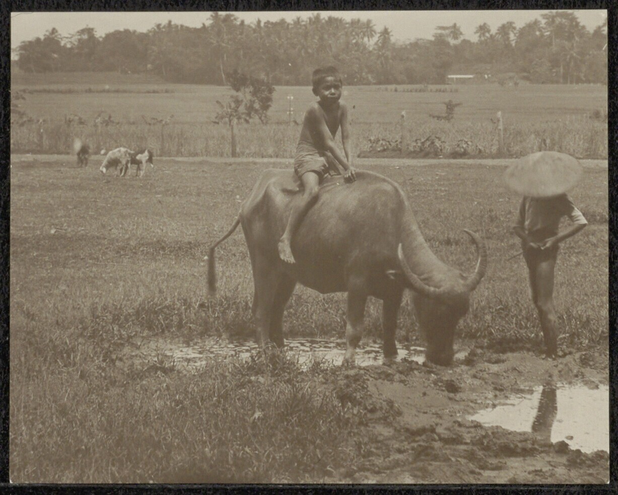 Jongen op een karbouw