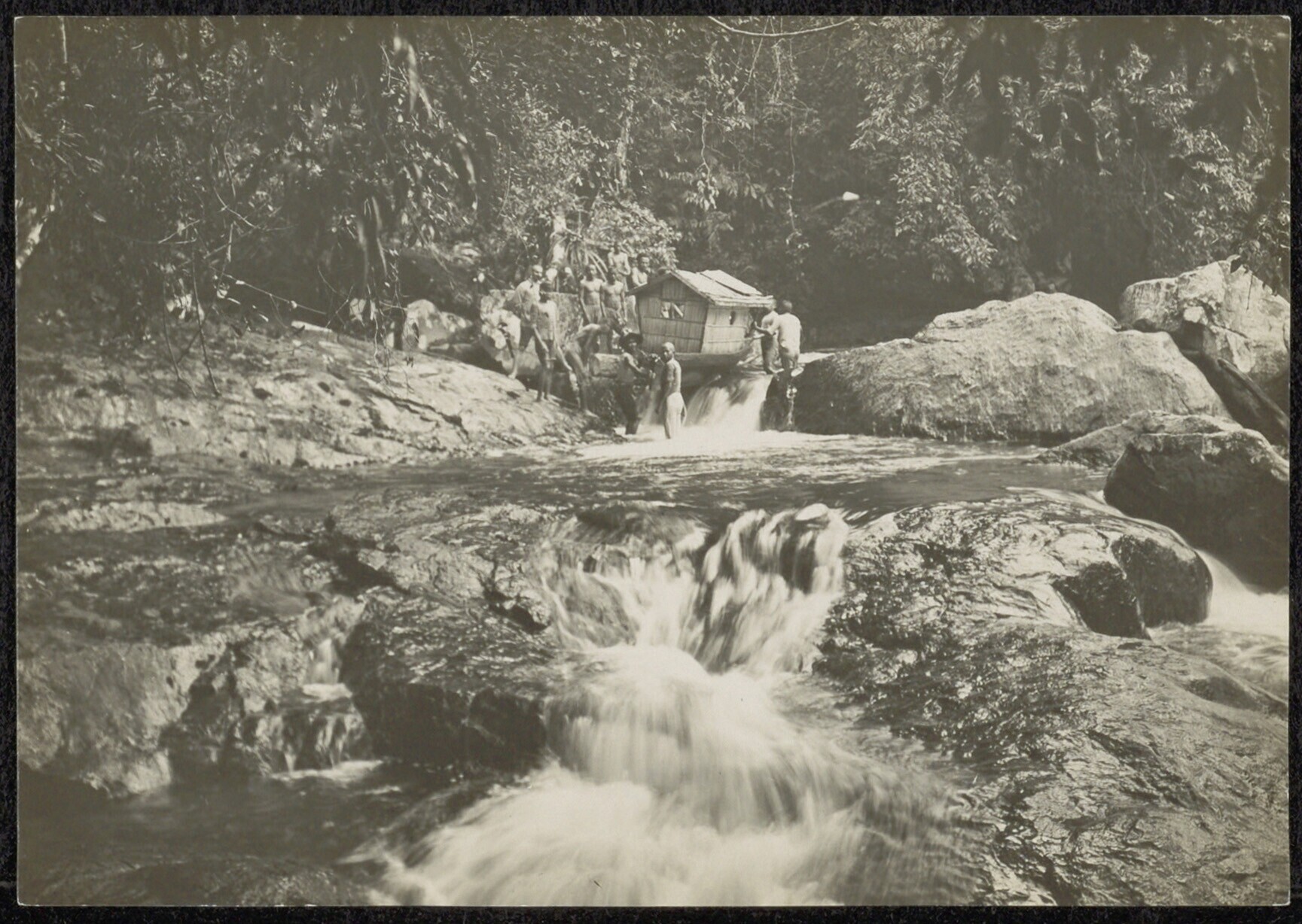 Groepsportret van mensen, vermoedelijk op een expeditie