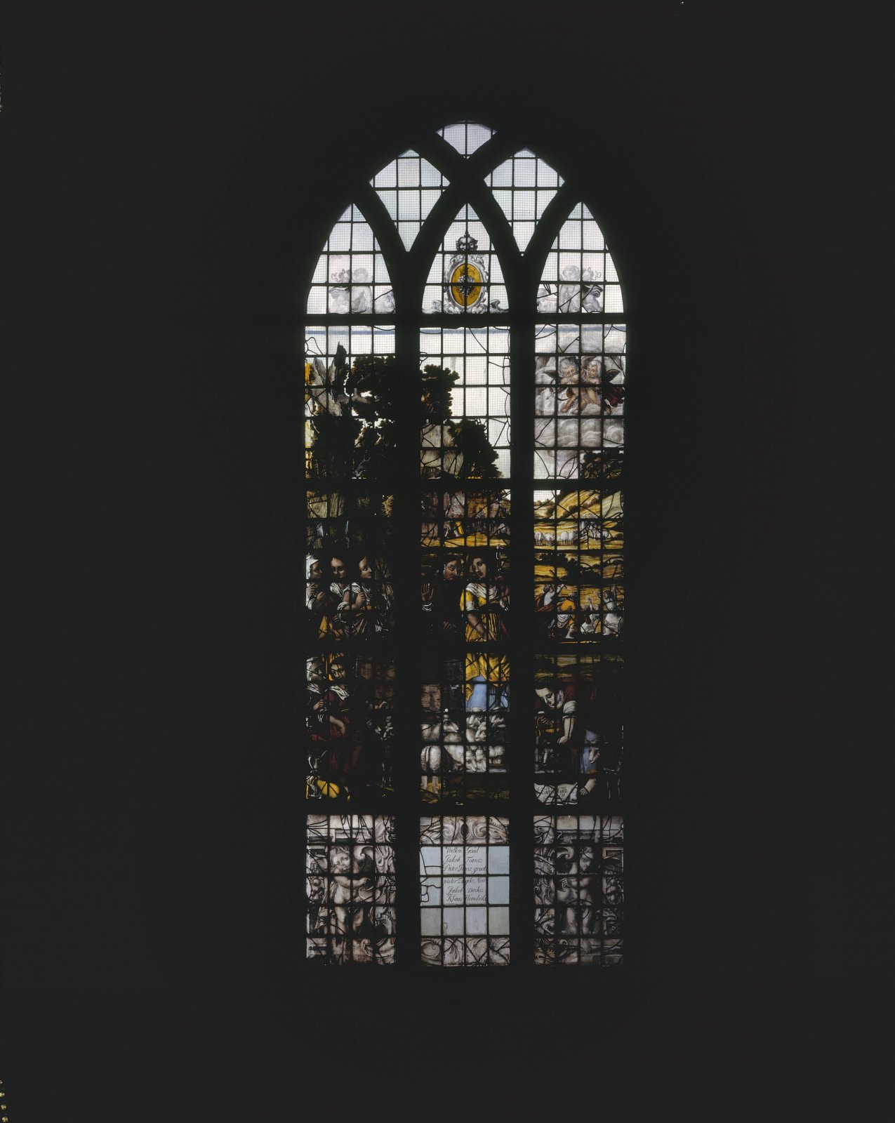 Interieur, gebrandschilderd glas, raam 18: "Haarlem"...