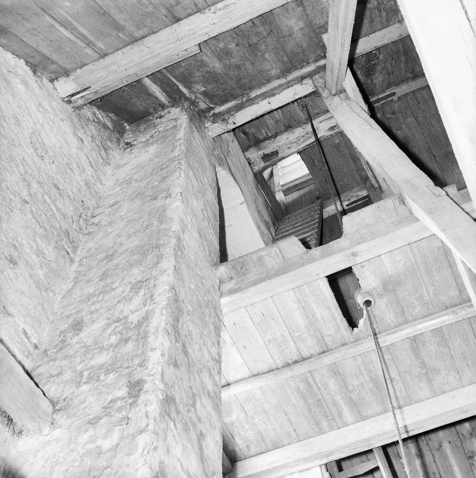 Interieur, toren gezien naar boven vanaf de begane g...