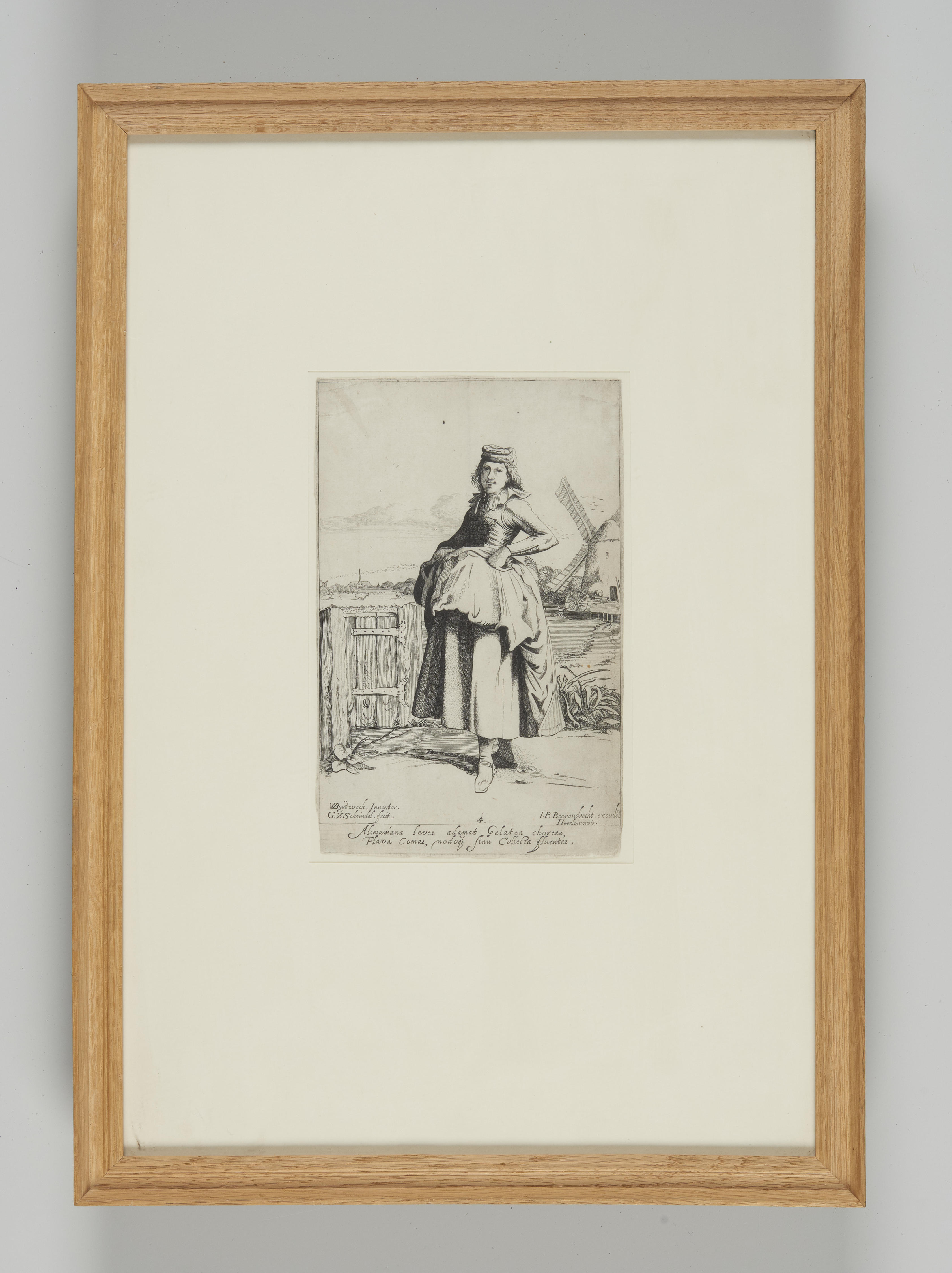 Ingelijste ets van een vrouw in streekdracht, Alkmaa...