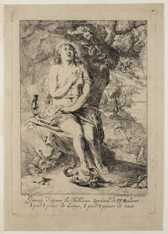 Naakte St. Magdalena op een rots