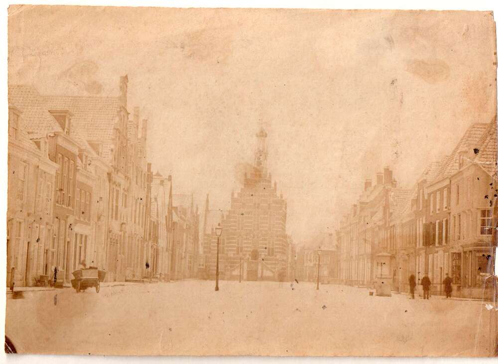Foto, voorstellende de Markt met stadhuis te Culembo...